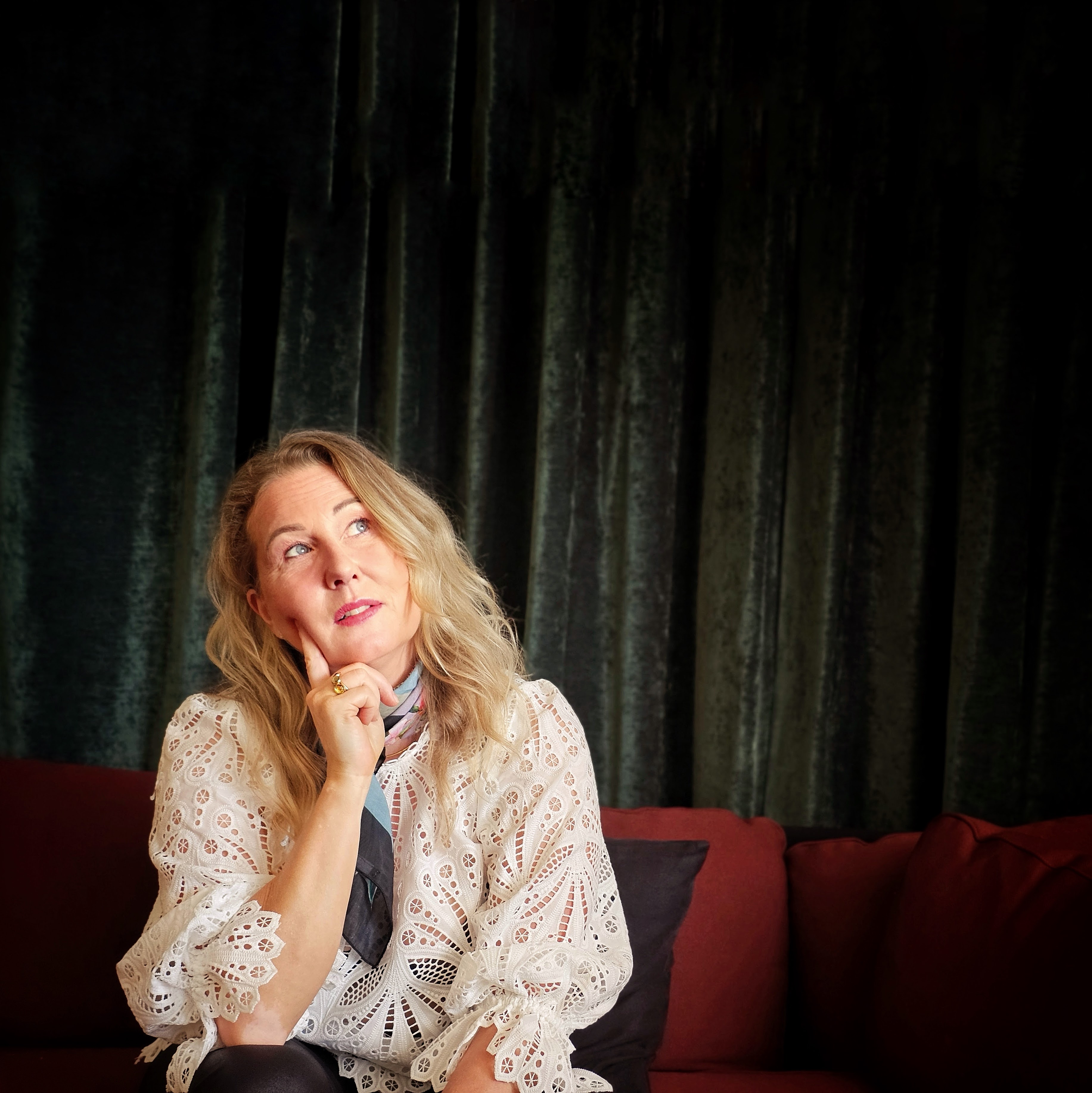 Camilla Sylvest Larsen Fik på en time skudt billeder til sin onlinetilstedeværelse og sit C.V. Vi skød billederne i det smukke lys i foyéen på Hotel Eremitage i Kgs. Lyngby.