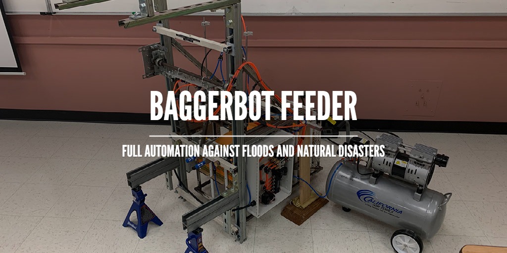 The BaggerBot Feeder is an apparatus to feed empty sandbags into an already existing machine that fills and sews the sandbags to be used in floods and other natural disasters.