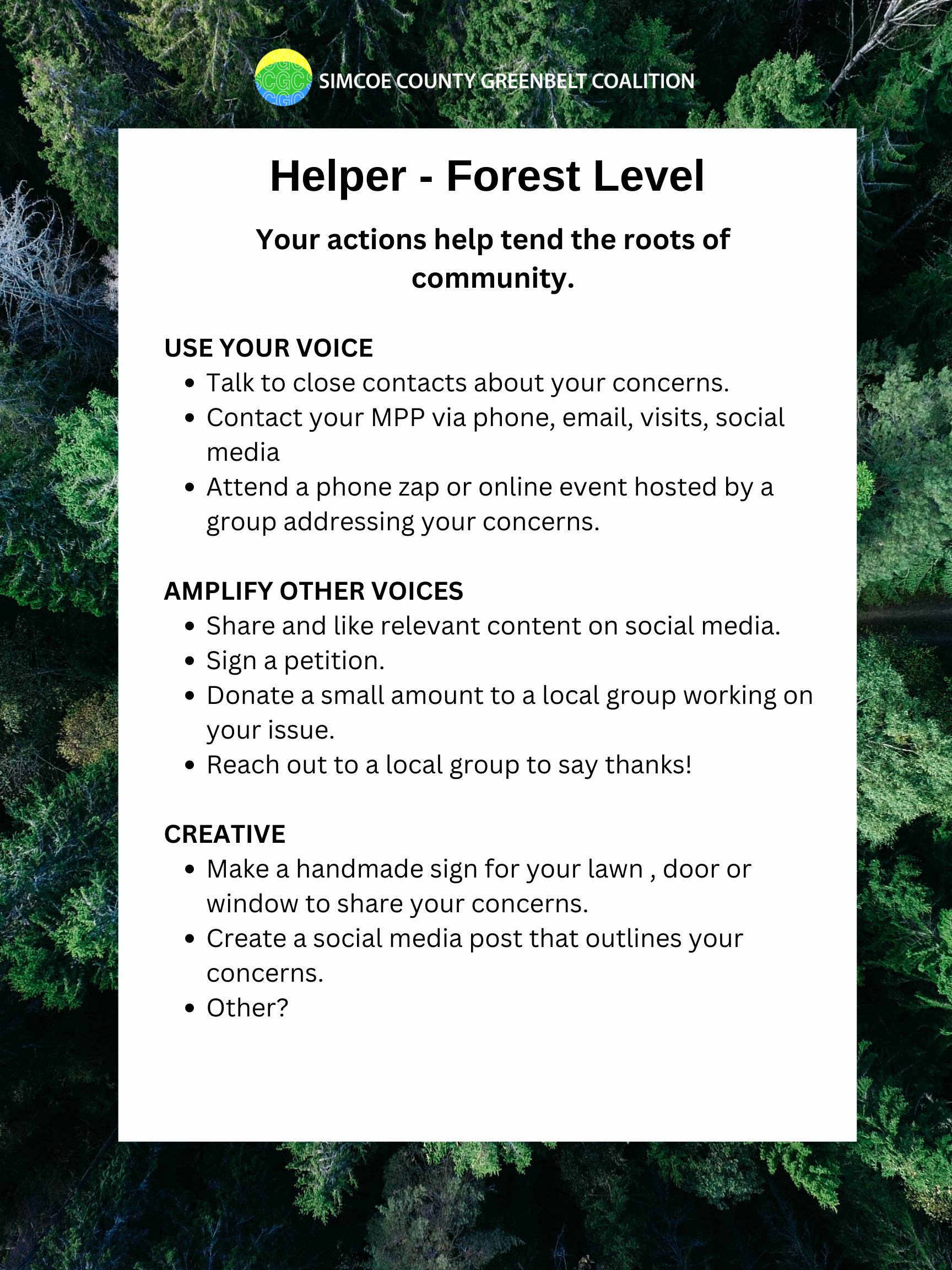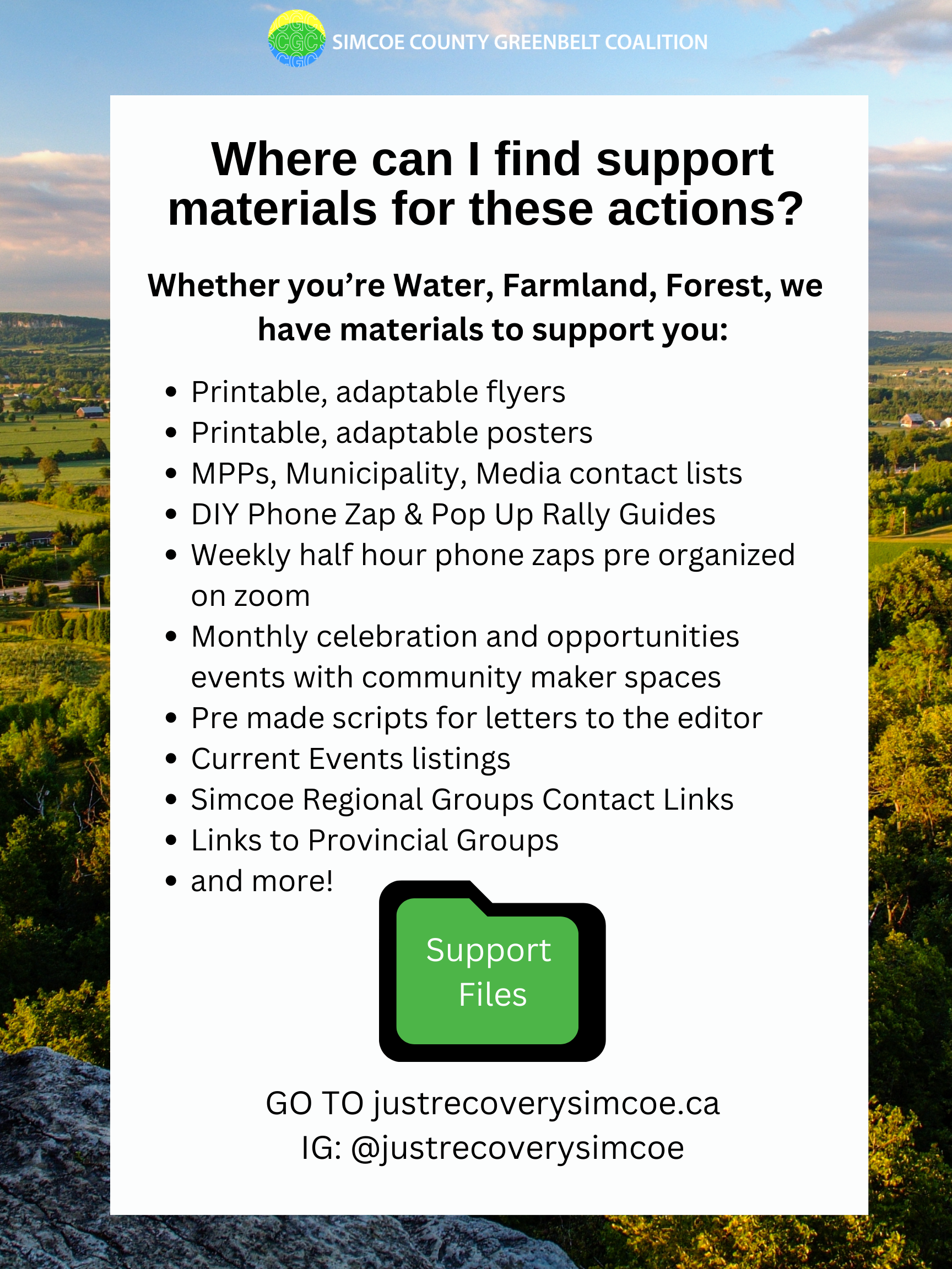 Any questions concerns or comments please contact margaret@simcoecountygreenbelt.ca or info@justrecoverysimcoe.ca