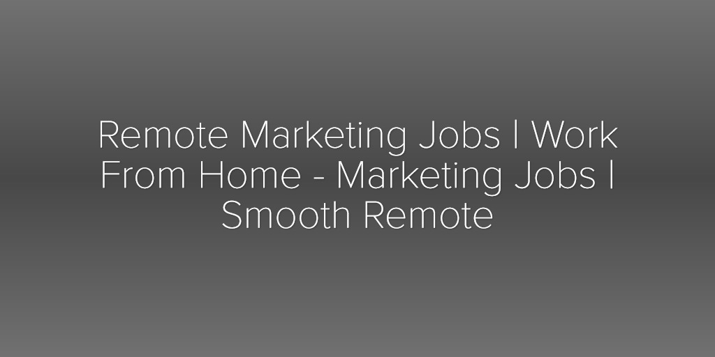 Remote Marketing Jobs | Work From Home - Marketing Jobs | Smooth Remote