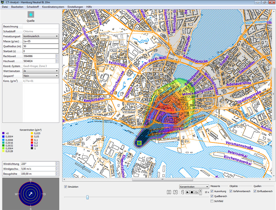 The Naval Research Laboratory worked with the Univerisity of Hamburg to simulate the modeling capability for the city of Hamburg using CT-Analyst. A modified version of the software was handed over to the chief of the Hamburg Fire Brigade in a ceremony held at the City Hall in Hamburg, Germany, on January 26, 2012.