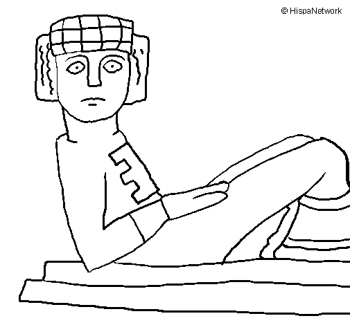 Chacmool (also spelled chac-mool) is the term used to refer to a particular form of pre-Columbian Mesoamerican sculpture depicting a reclining figure with its head facing 90 degrees from the front, supporting itself on its elbows and supporting a bowl or a disk upon its stomach.