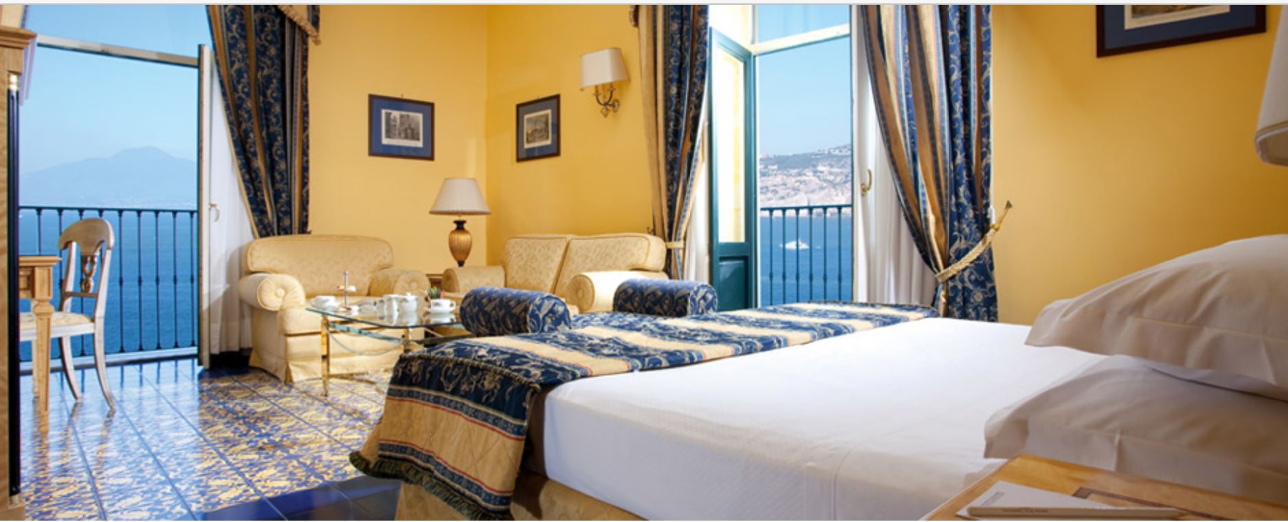 The vast, elegant halls and lounges, sparkling with reflections from the sea, are decorated with frescoes, majolica, soft oriental carpets, period statues, old masters and priceless Sorrentine inlaid furniture. They mirror the finery, meticulous style and eye for detail that are the distinguishing marks of the entire hotel.