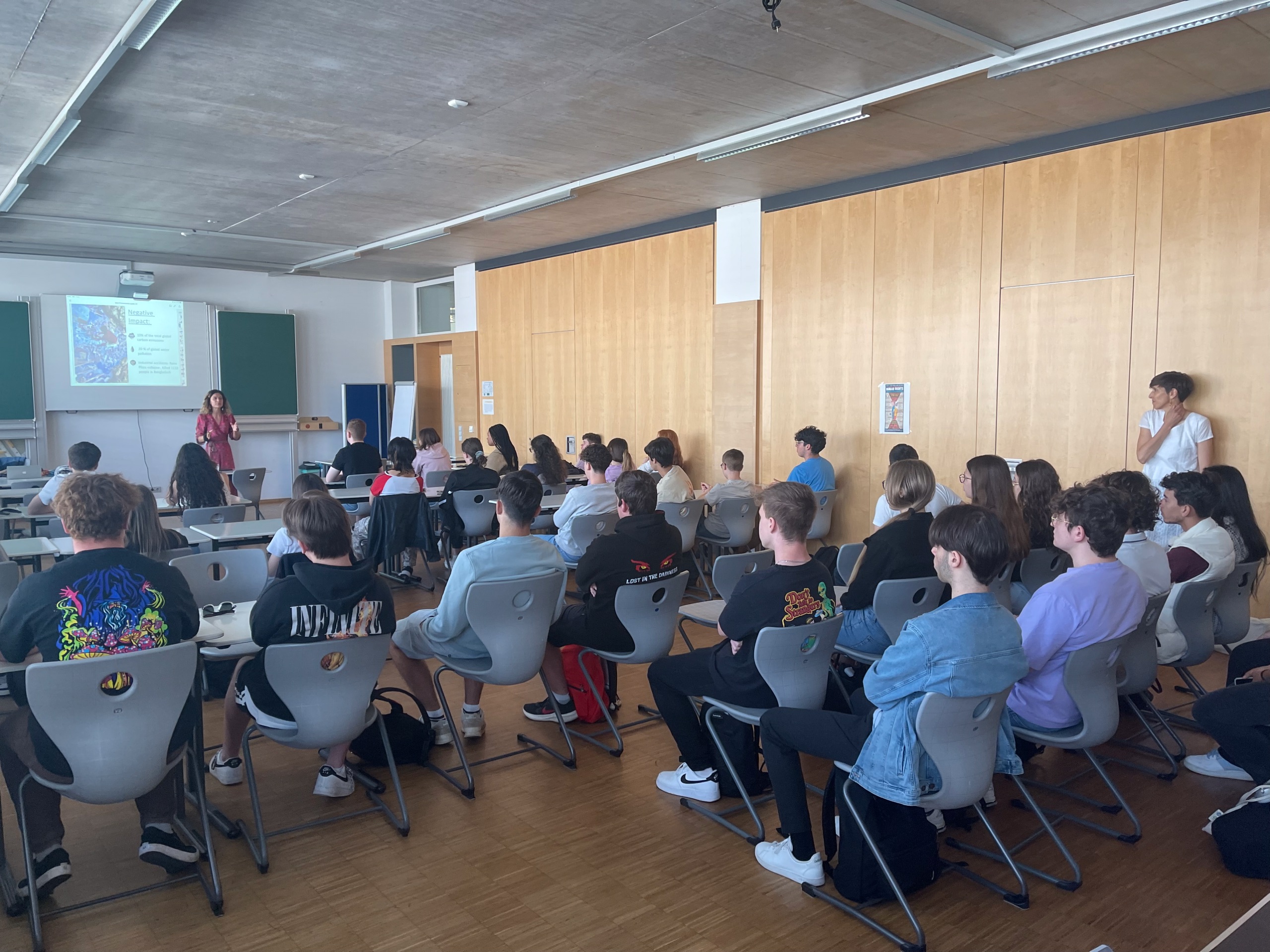D’Schüler*inne goufen op dës Aart a Weis sensibiliséiert iwwer d’Auswierkungen vun der „fast fashion“ nozedenken an krute konkret Optiounen proposéiert fir méi e nohaltegen Ëmgang mat Moud an Kleeder.