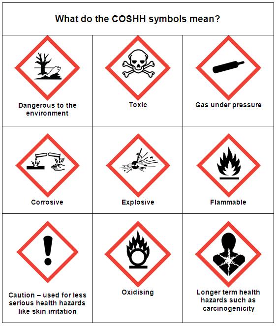 Products you use may be ‘dangerous for supply’. If so, they will have a label that has one or more hazard symbols.