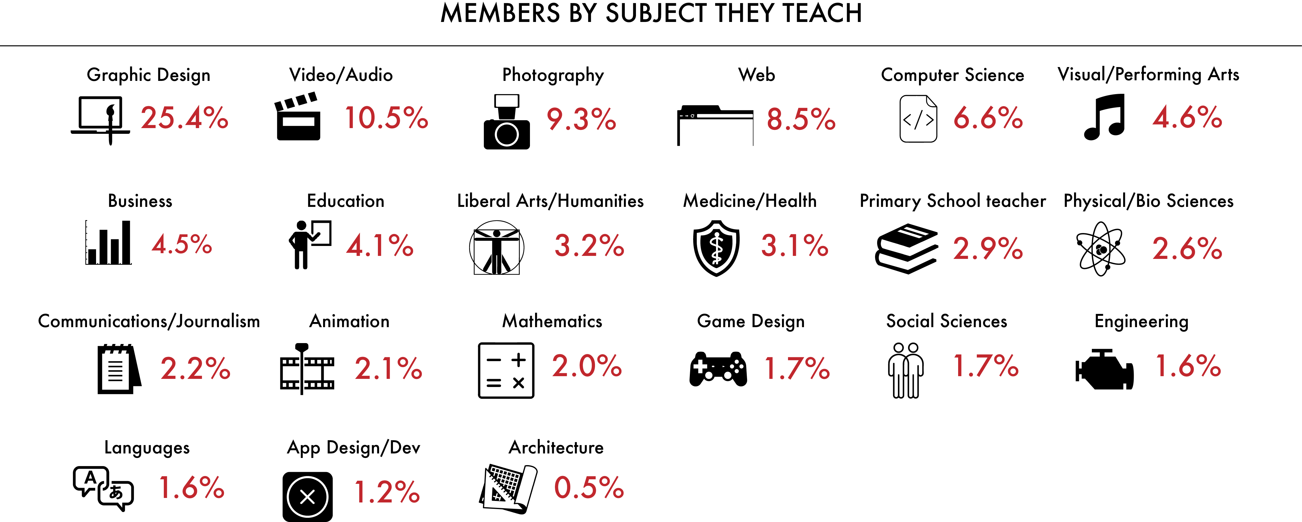 Adobe education exchange members represent a diversity of education segments, subjects and interests
