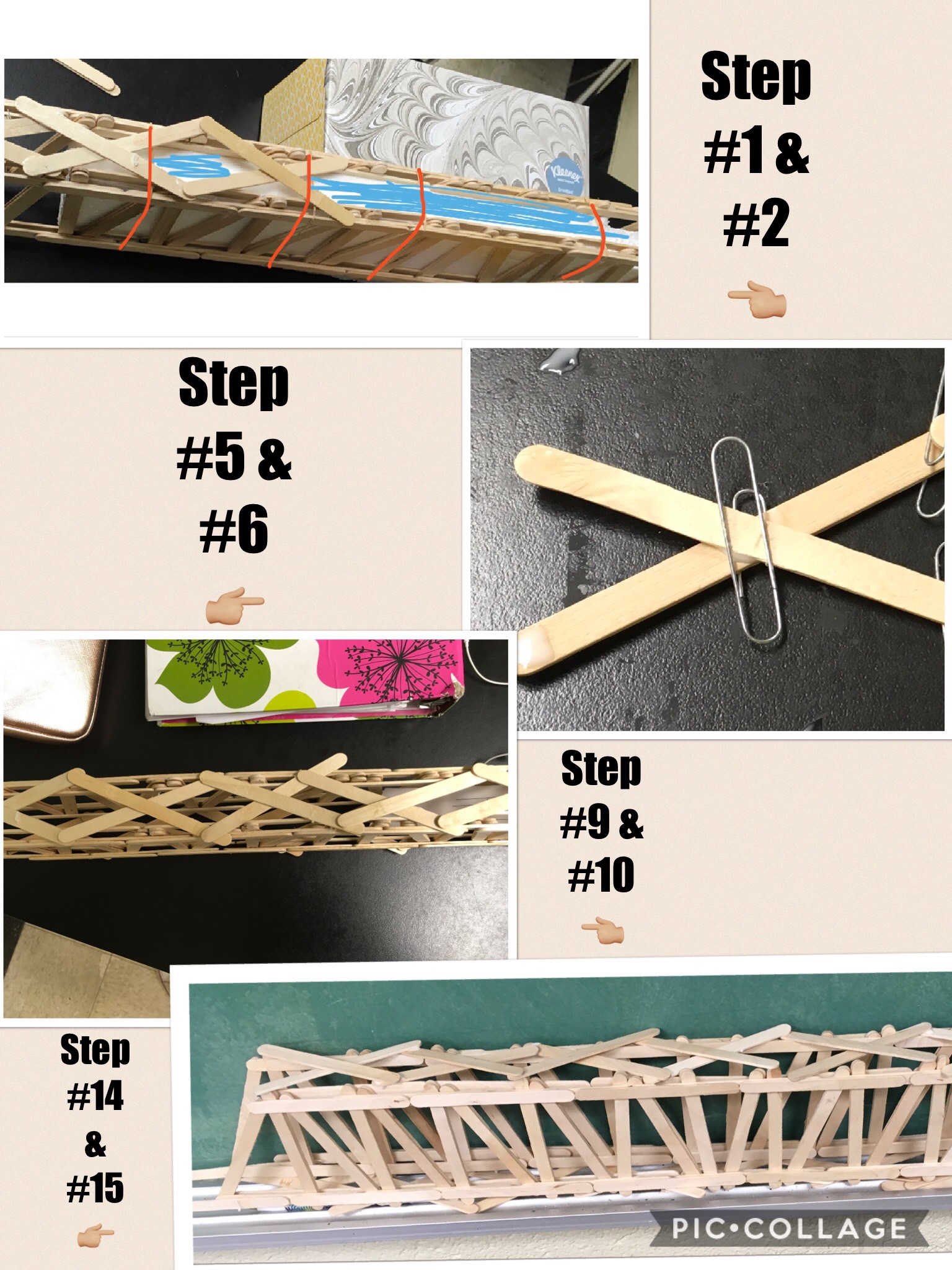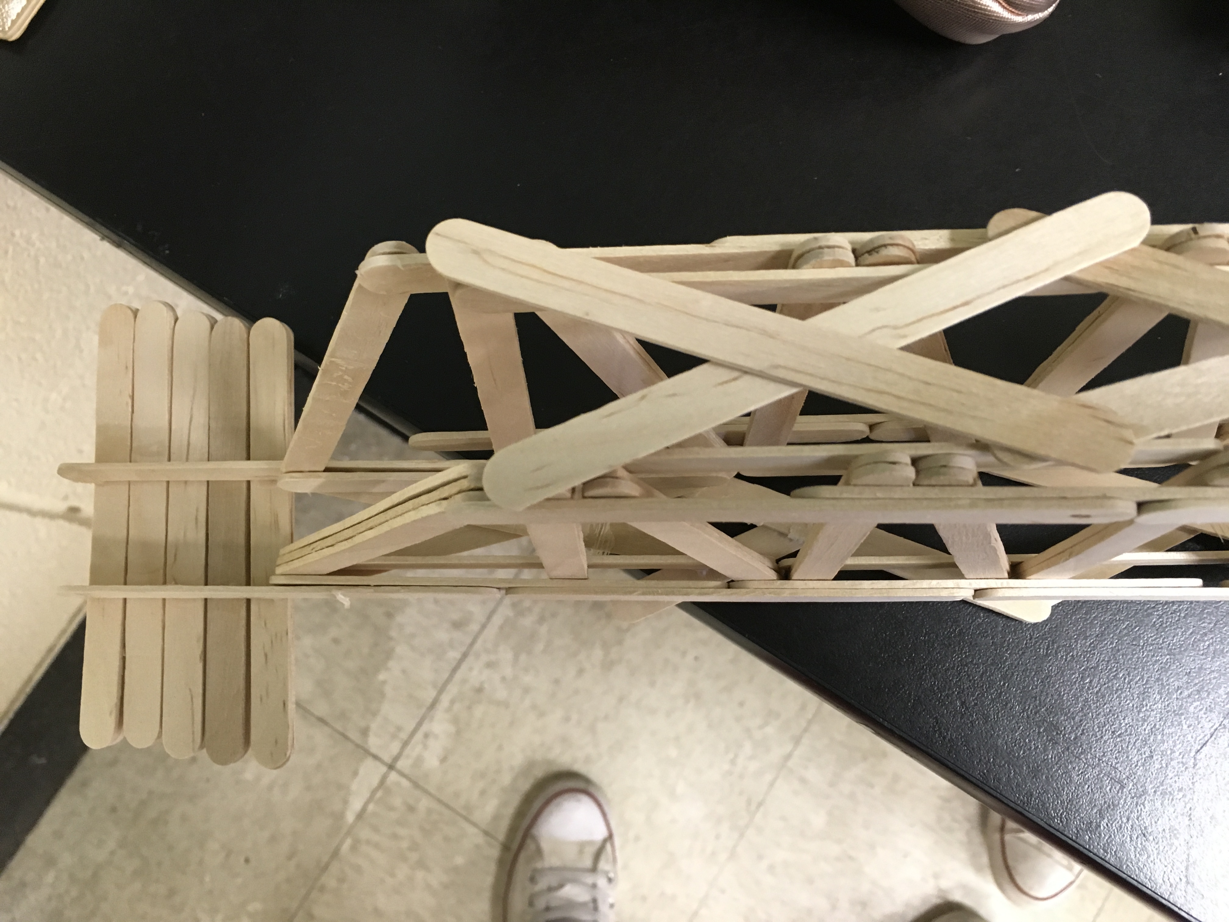 - All of your X's should be gone and used at this point. You have now completed most of your bridge, but you still need to make things where you will be able to set it on a table or desk with 30 inches in between the two tables.