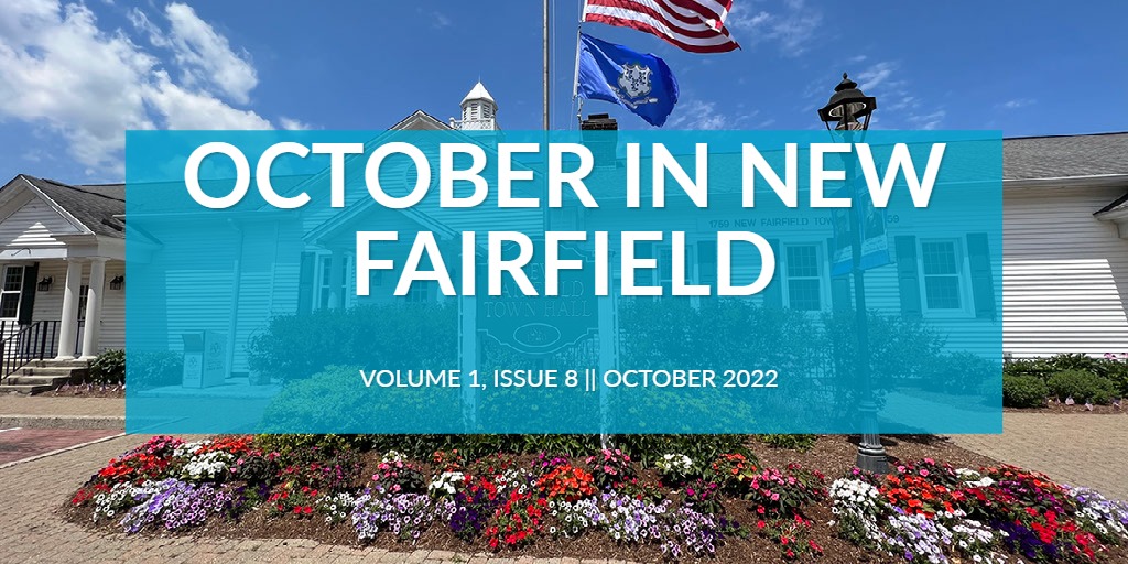 Happy Fall! September was a busy month in Town, and I enjoyed seeing so many of you at the September 11 remembrance ceremony, the CELA ribbon cutting ceremony, New Fairfield Fair Day and the FISH fundraiser. October promises to be equally busy, starting with a Town meeting regarding American Rescue Plan (ARPA) funds and culminating with the Trick or Treat Fest hosted by Parks and Rec.