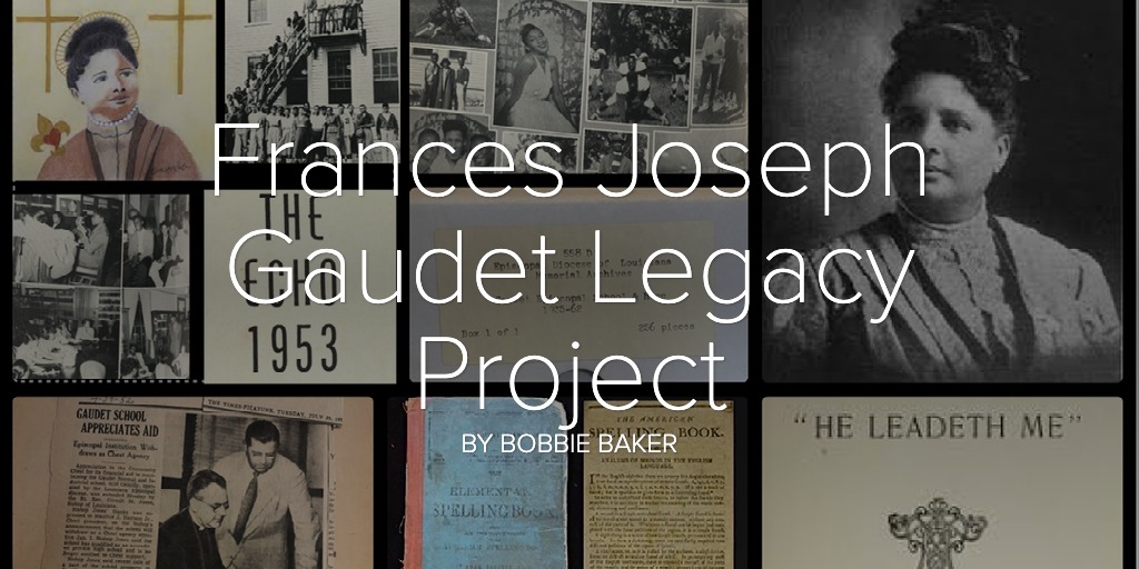 I began my research process in class by exploring and analyzing my pod of primary sources (the 1953 yearbook) with peers in class. This process allowed me to understand more about Frances Joseph Gaudet’s impact through the eyes of a student who attended her legacy school. During this initial research process, I found that the yearbook exhibited both implicit and explicit messages. For instance, the yearbook’s Forward implies that the memories of students will live on just as the legacy of Frances Gaudet lived in them during their time at the school, while more clear displays of the inclusivity of the school and many achievements of students are presented throughout the yearbook. I also found that the yearbook is biased as it favors and glamorizes the impact of Gaudet, while the remaining, more negative or challenging topics are hidden away from the eye of the general public. This needed to be reconciled, so in order to gather more holistic information on Frances Joseph Gaudet’s school, I utilized more primary sources, a set of archives- from the archival collections library. After viewing box 1 of the Episcopal Diocese of Louisiana Memorial Archives, I found more information to fill in gaps and balance out the biased perspectives centralized in the yearbook. Knowing I needed to acknowledge Gaudet’s life and how she came to start the school influenced another stage in my research. This is when I began to incorporate the various information from secondary sources with that of other primary sources such as Gaudet’s autobiography He Leadeth Me. This supplementary information all provides me with an overview of Frances Joseph Gaudet’s life: her own influences, inspirations, and experiences that allowed her to be moved to bring about change and help the youth in her community.