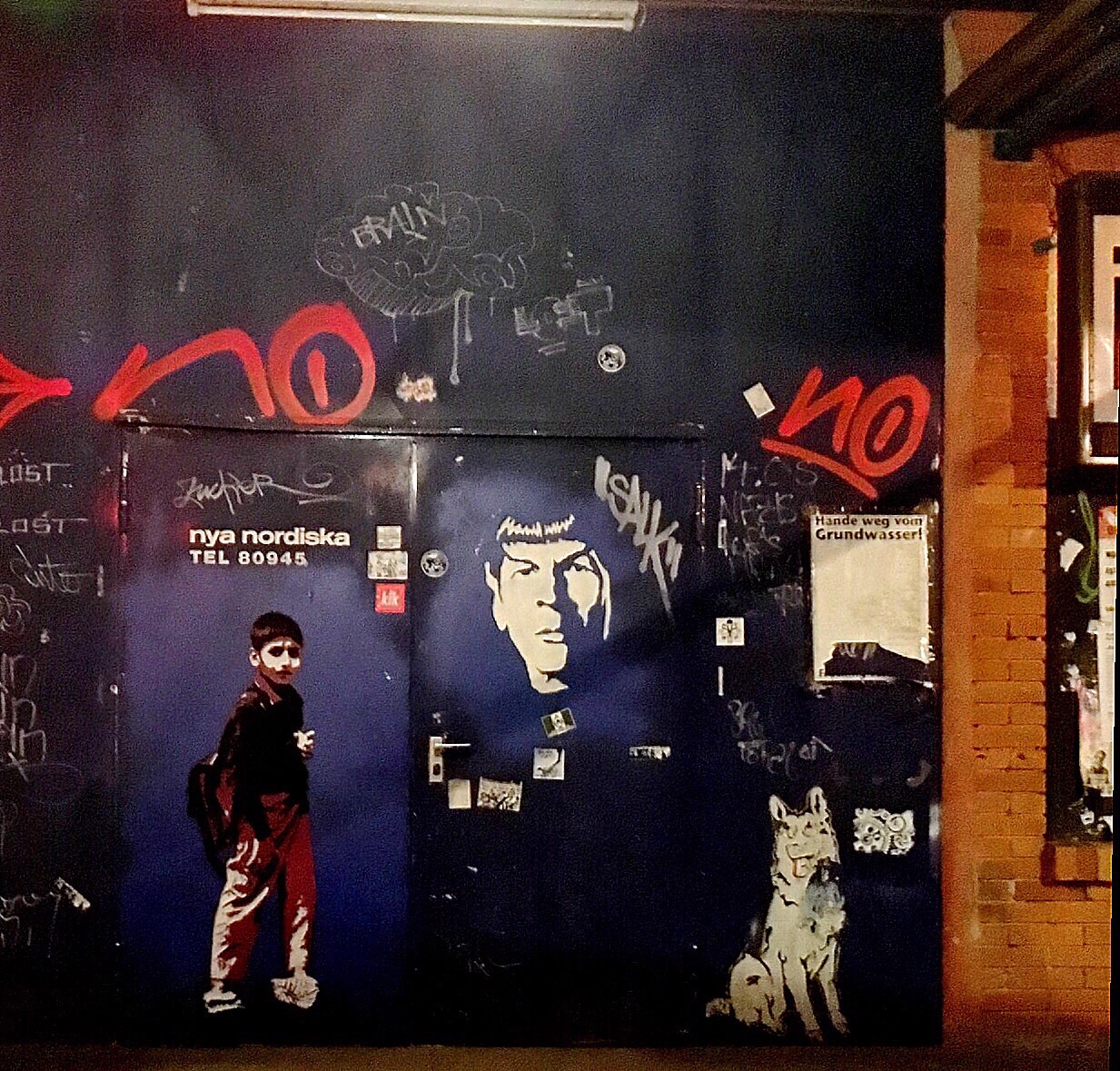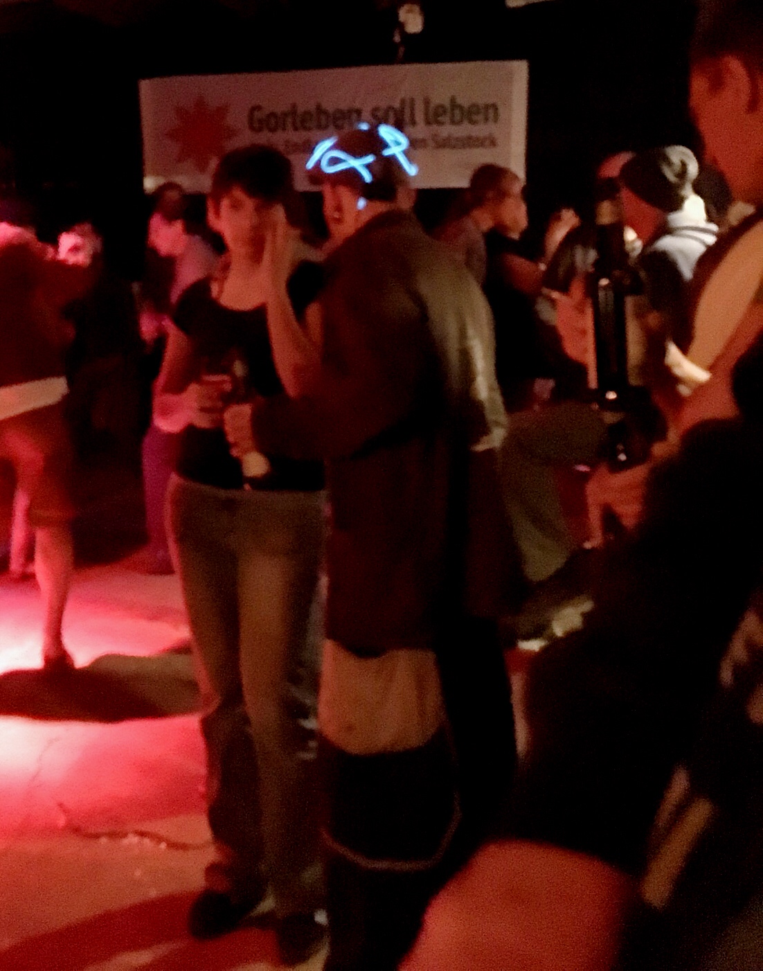 Later, my watch notifies me of an incoming message - it is Olaf asking "Mützingenta oder Neu Tramm?" A good question...but a quick consultation of the websites for each those locations shows Neu Tramm to be a better option. And it is closer for Olaf to get back home afterward. So, my last stop for the night is Neu Tramm where CJ Laufi is mixing it up old school. He is billed as Der einzige Cassetten Jockey der Republik - "The only cassette jockey of the Republic," playing punk, hip hop, country (there was no country), Detroit techno, and music with soul. The party has already started by the time we arrive.