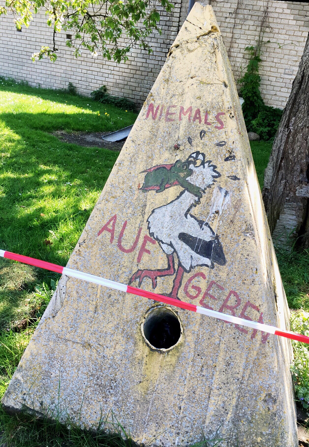 On the way out of Kussebode I spot a weathered cement pyramid - I had heard about these last year. They were placed where they could block the transport of atomic waste into the area and people would put their hands in the holes and grab on to a bar on the inside. In this way, neither the people nor the obstacle could be removed. This was a highly effective strategy. I need a cup of coffee and it is still too early to return to the flat in Lüchow so I head to the Mützingenta where I know I will get a place to sit and a good coffee. After my coffee, and at an hour which will allow me to park legally, I drive back to Lüchow for a few hours of work and dinner.