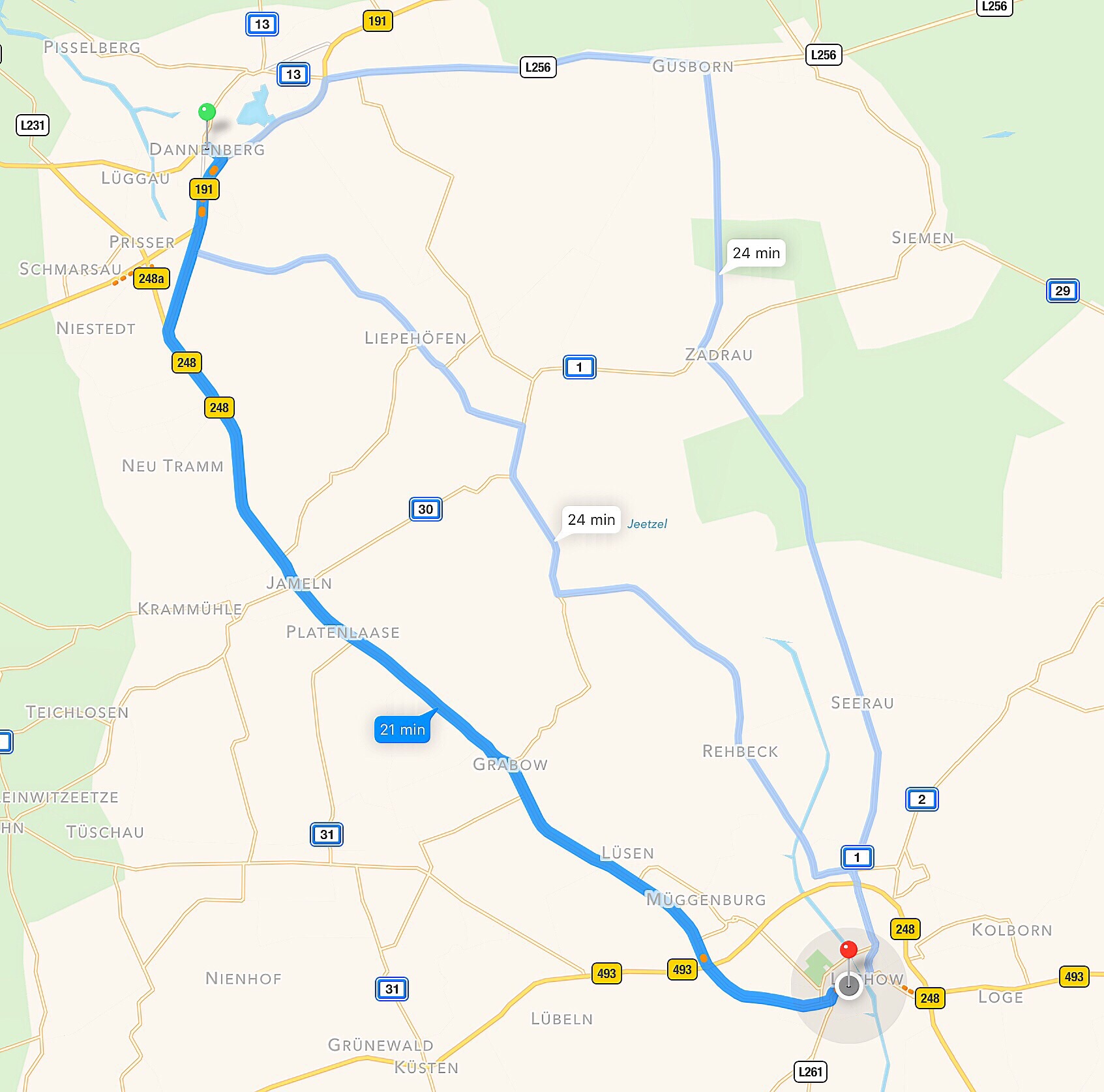 After my shopping expedition, I am on my way to Güstritz Villa Wendland. I enter the destination into the GPS and start off.