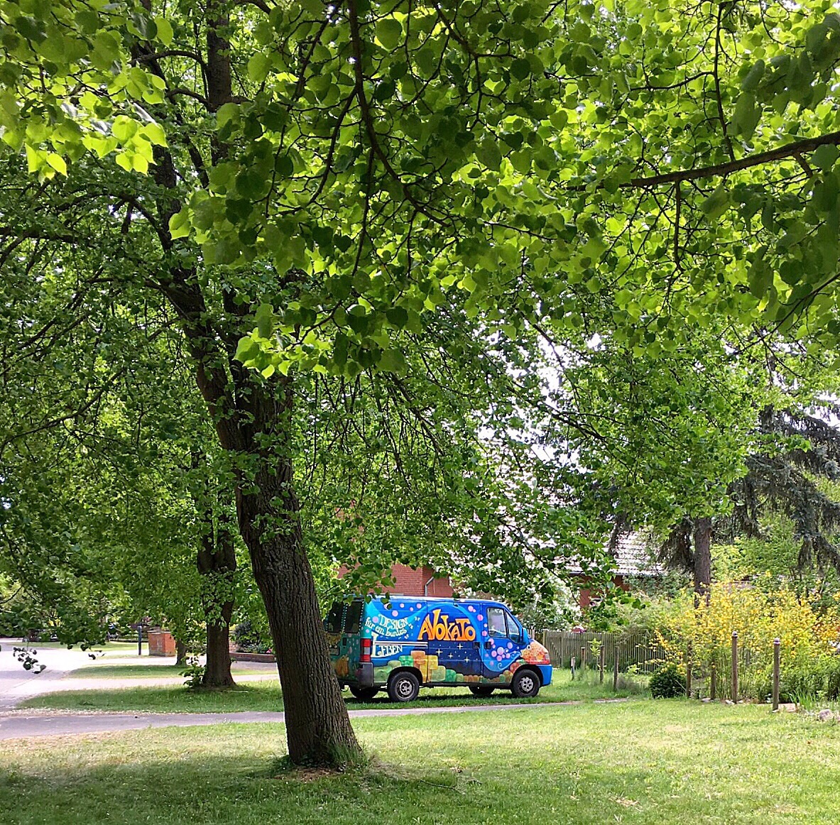 But, as it is close to 11:00, I know that I will need to find another place to put my car while I am waiting for him. I could leave to the Mützingenta but there is no cell signal so I would not know if he is able to join me there. I will wait in Lüchow and do some work while I wait. But I still need to move the car. As I drive around the block (so to speak) I spy a small park close to the apartment...and a parking space (great!).