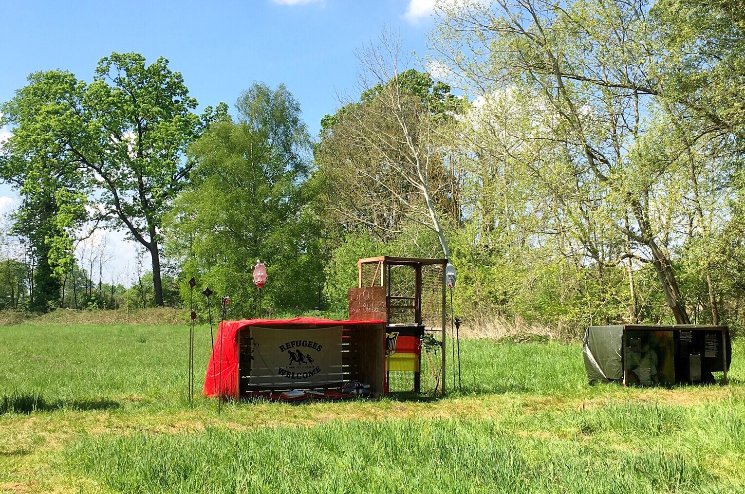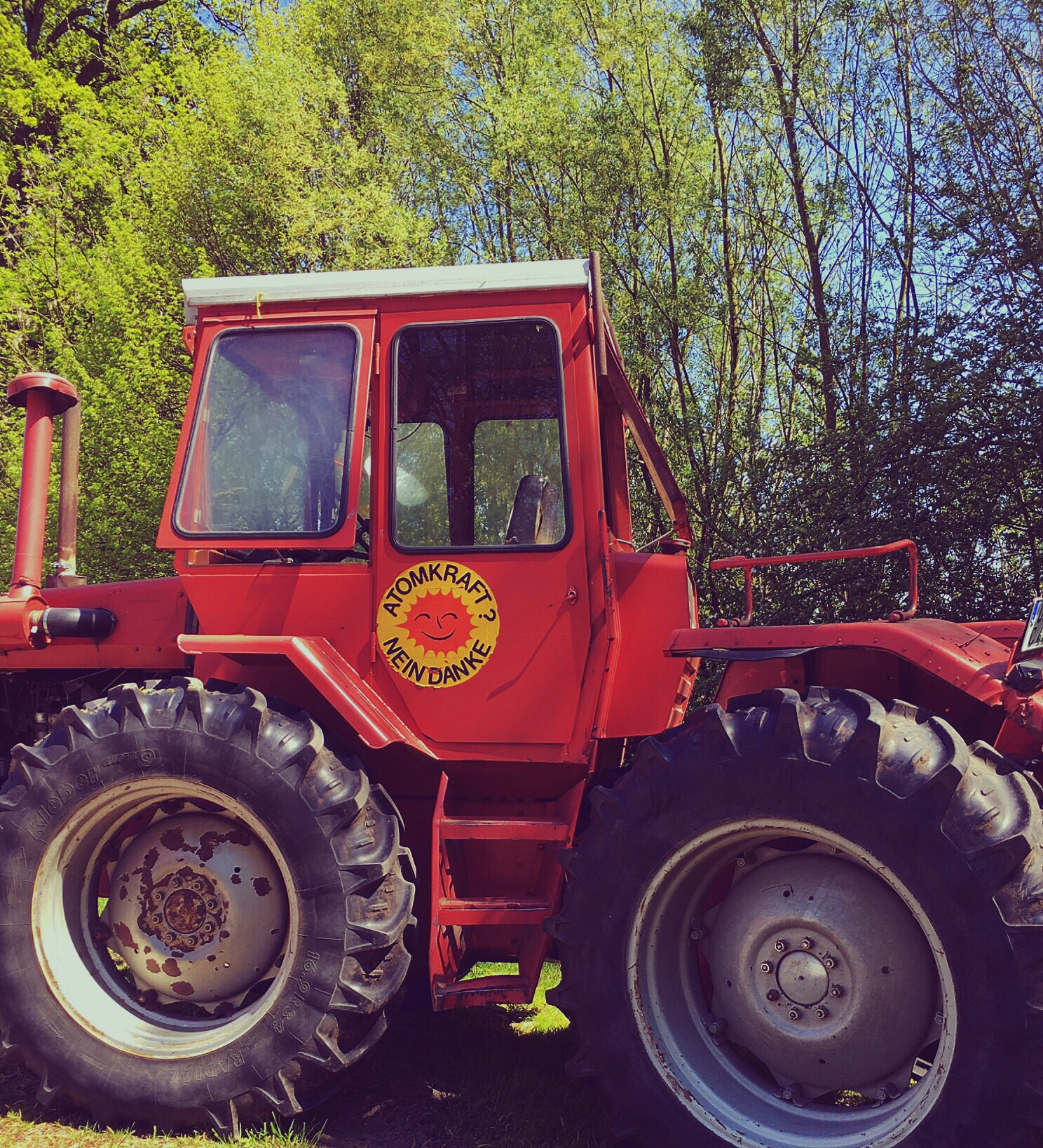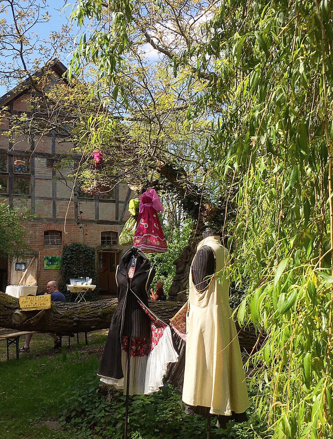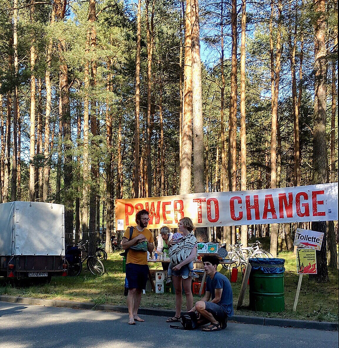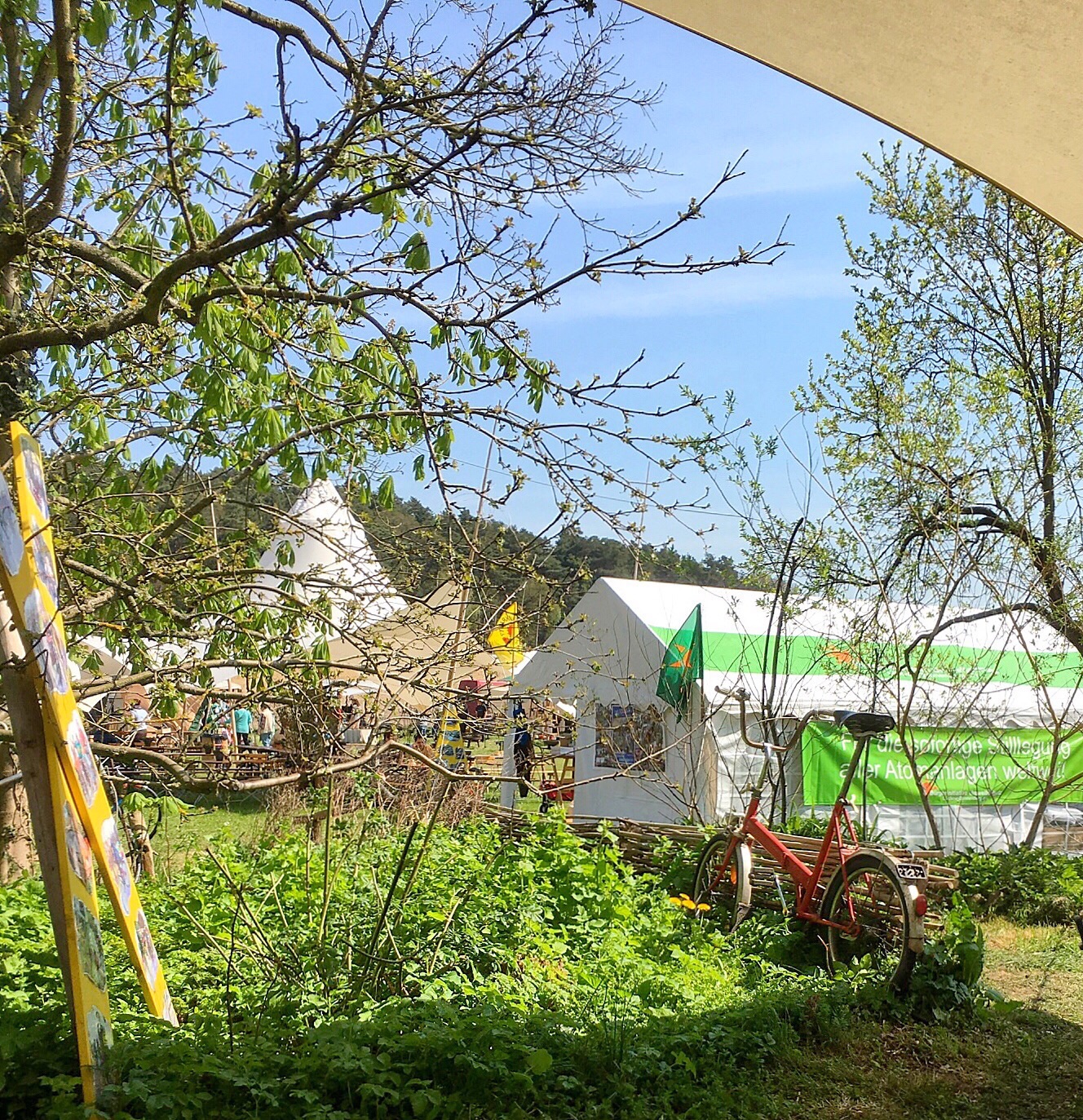 Olaf says he would like to meet me in Lüchow for lunch (he has a few errands to do before the afternoon in Gorleben). We have lunch at the restaurant across the street...along with food, I found the wifi. I need to stop here and tell you that Olaf's father has wifi. But, it likes to play hide and seek with me...and it is very good at hiding. I am told today that the cafe across the street will have a stronger signal from the router because of the router's location. Figures. At 12:30, Olaf says he needs to leave and suggests that I leave shortly to Gorleben to ensure a decent parking space. We part and I tell him I will see him in a few hours. I return to the flat, change shirts, add yet more sunscreen to any exposed body part, and head out. Once I get to Gorleben, I start the parking dance. I don't park at the end but, instead, drive a little farther until I find a spot that I feel is reasonably close. I park and follow the people already walking to the festivities. I am wondering how far I will have to walk as I follow the line of people into the woods...oh! I am here! Well, that was quick...