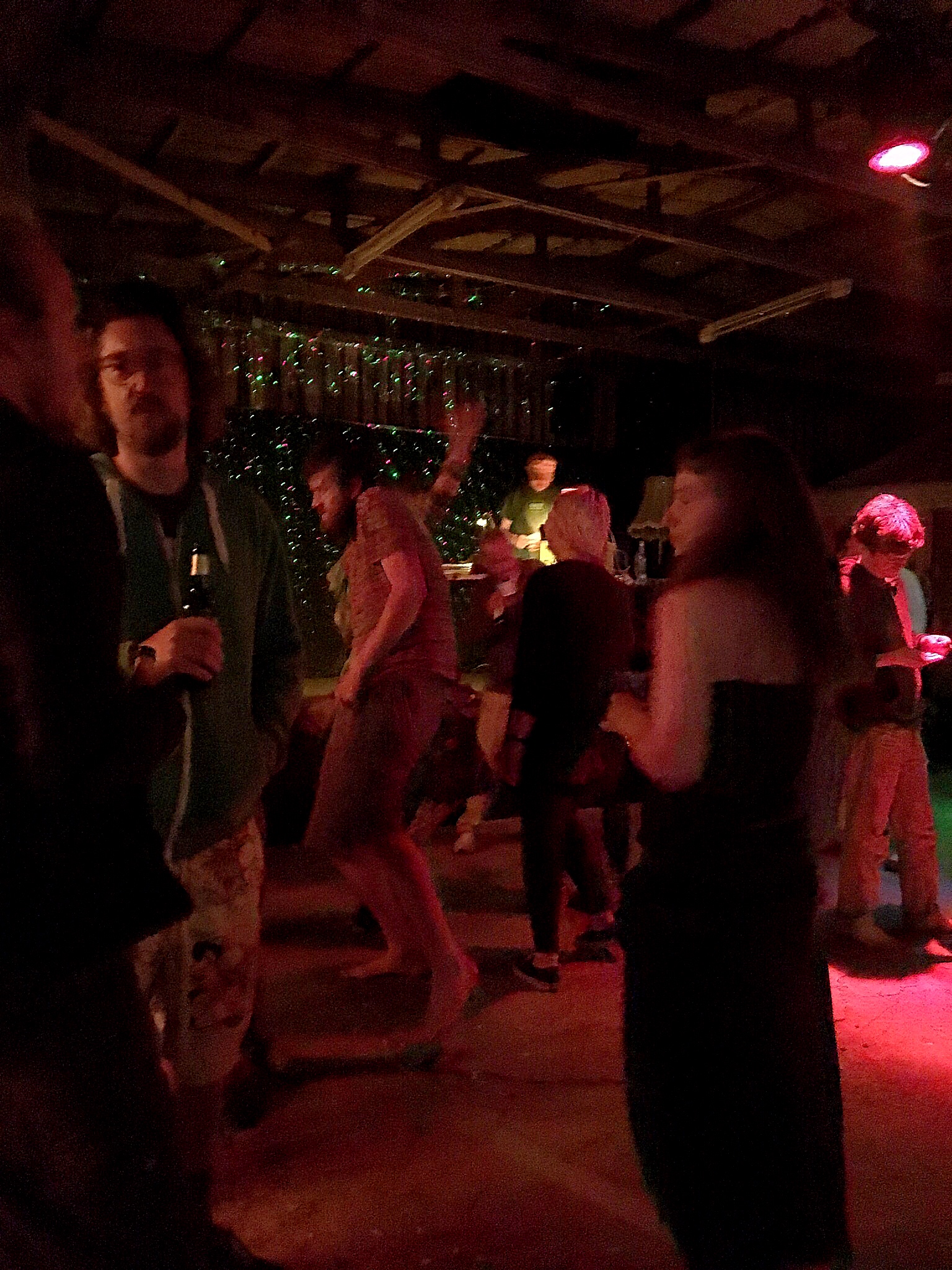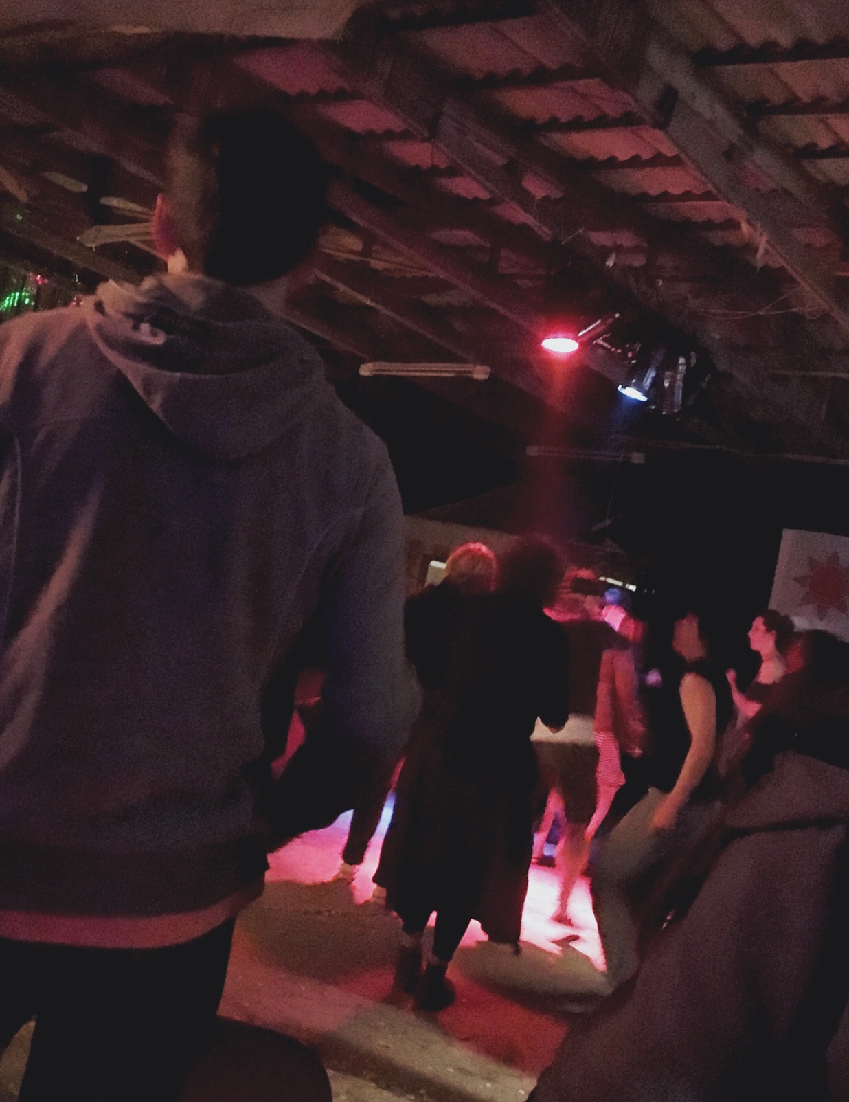 I remember Neu Tramm last year as having some very interesting bands from several countries. We pay the entrance fee, grab a drink, and settle into some vacant old armchairs to enjoy some new sounds. Luckily, it is not as crowded as it has been other times so we can just enjoy the music without fighting a large crowd for space and our vantage point allows us to still (somewhat) hold a conversation.