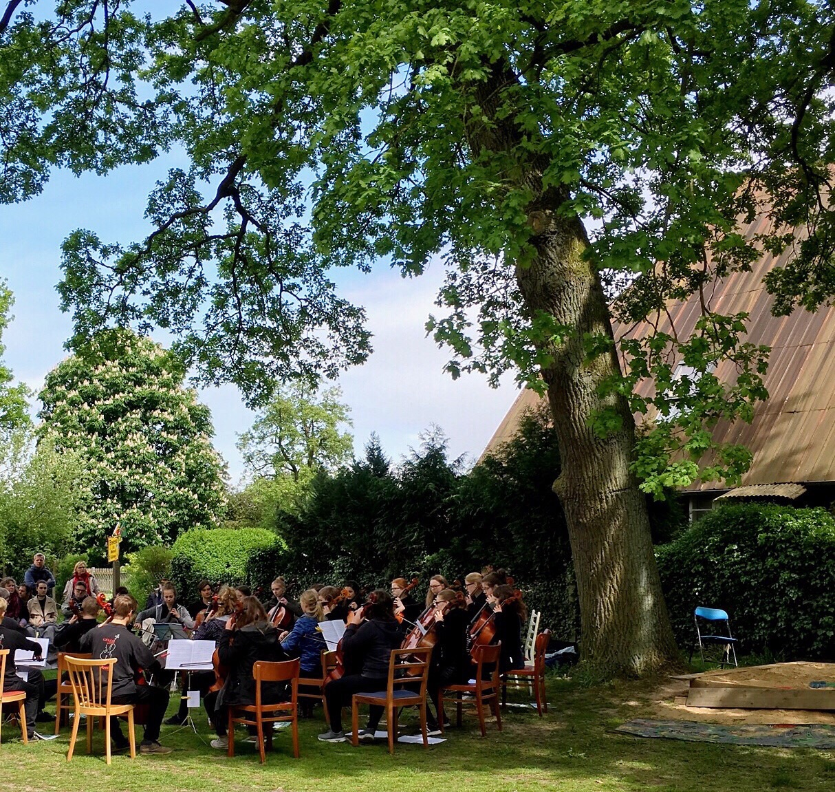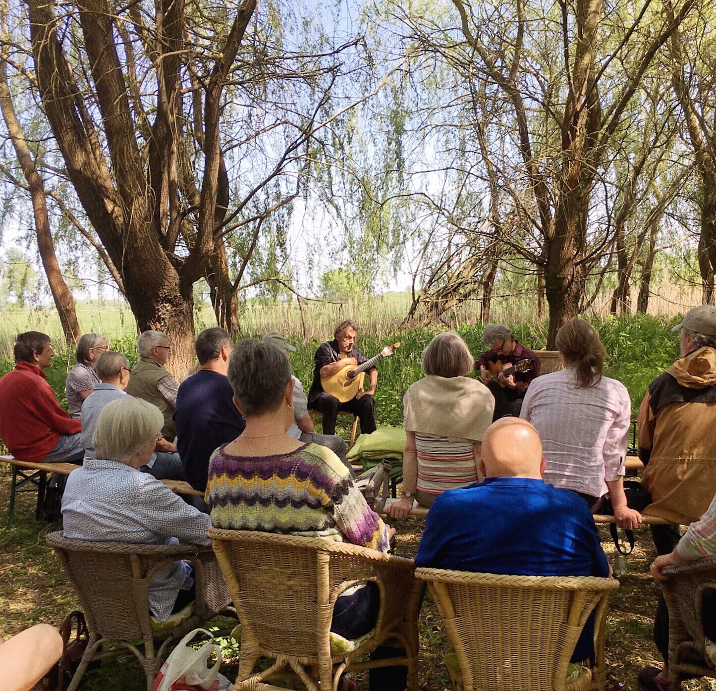 The students have already started their recital by the time I arrive - they have set up under a tree. I find a good vantage point and settle in to listen. I can tell they are students - there are a few off notes but all in all they are not too bad.