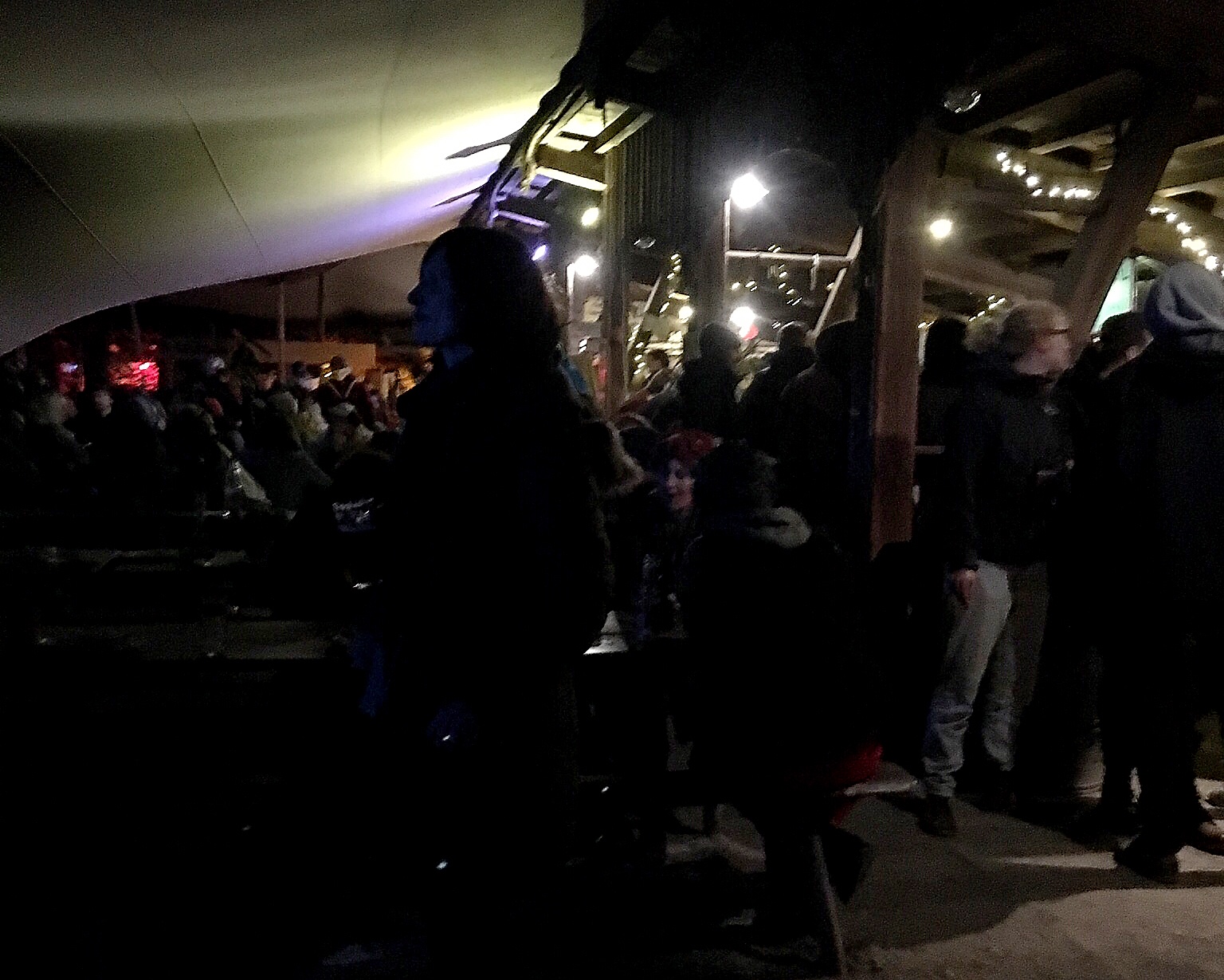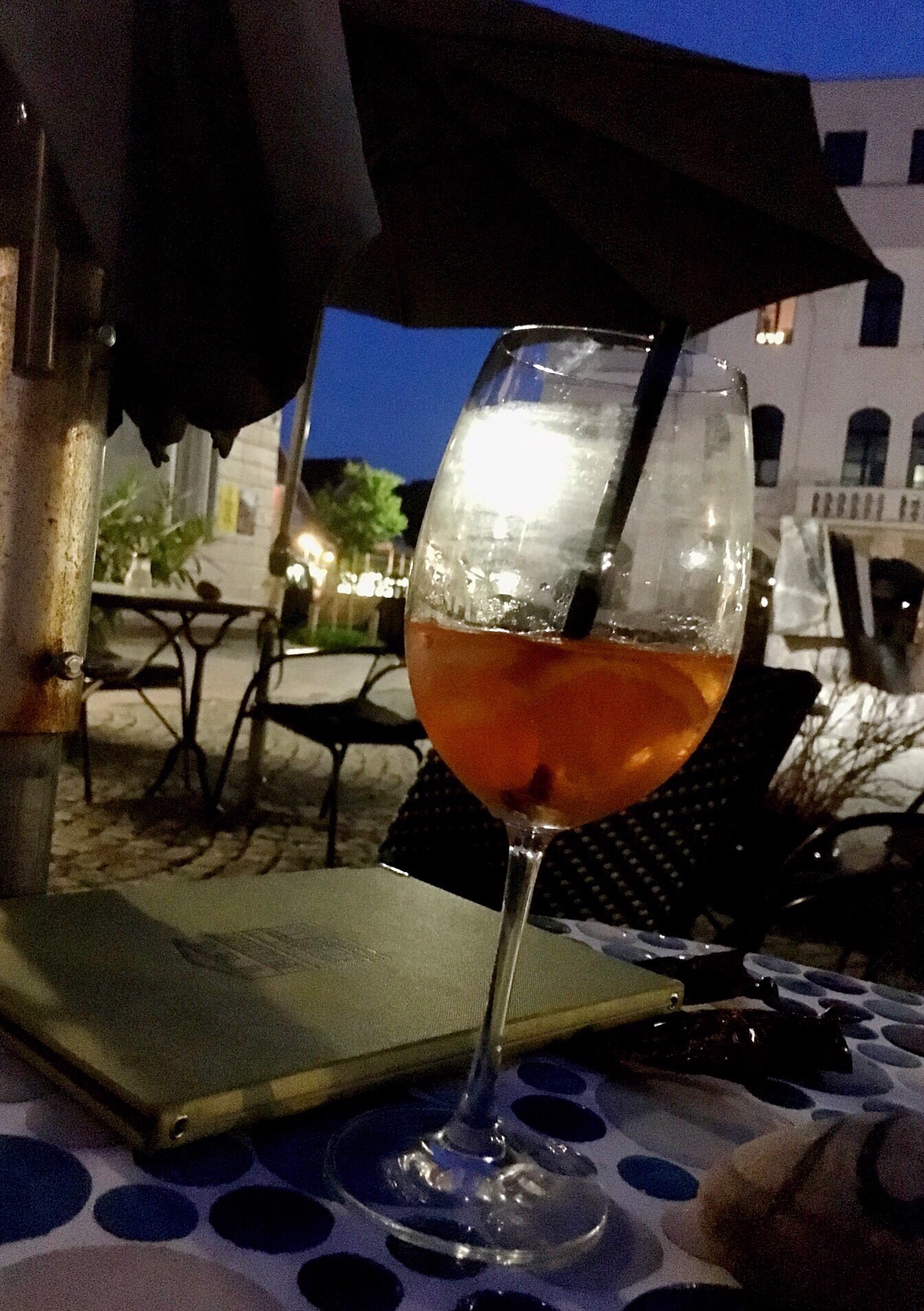 The music is good and we are all enjoying people watching and soaking up the atmosphere and listening to the music. After an hour or so, Jens and Melli indicate that they are heading back to the house...Olaf and I stay for more music and another drink. This year, the trees have been swathed in colorful lights and we walk around to see them.