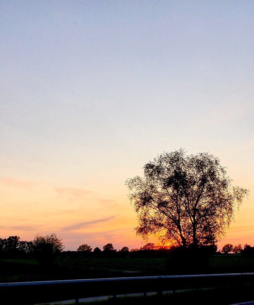 Jens is still not home (I check again on my way out) so I drive back to Lüchow for some food to start a few hours of work. Since it is Tuesday, Olaf asks if I would like to join him at the weekly "therapy group" at Lina's Bottega in Dannenberg around 21:00. "Yup," I reply. So at 20:30ish I start driving. I notice that there is an absolutely beautiful sunset this evening which I am able to capture from the car.