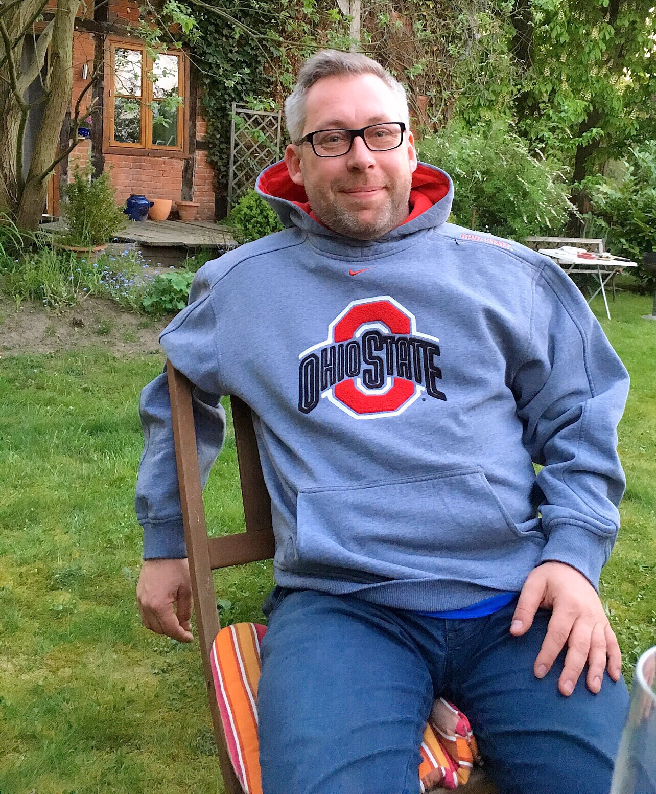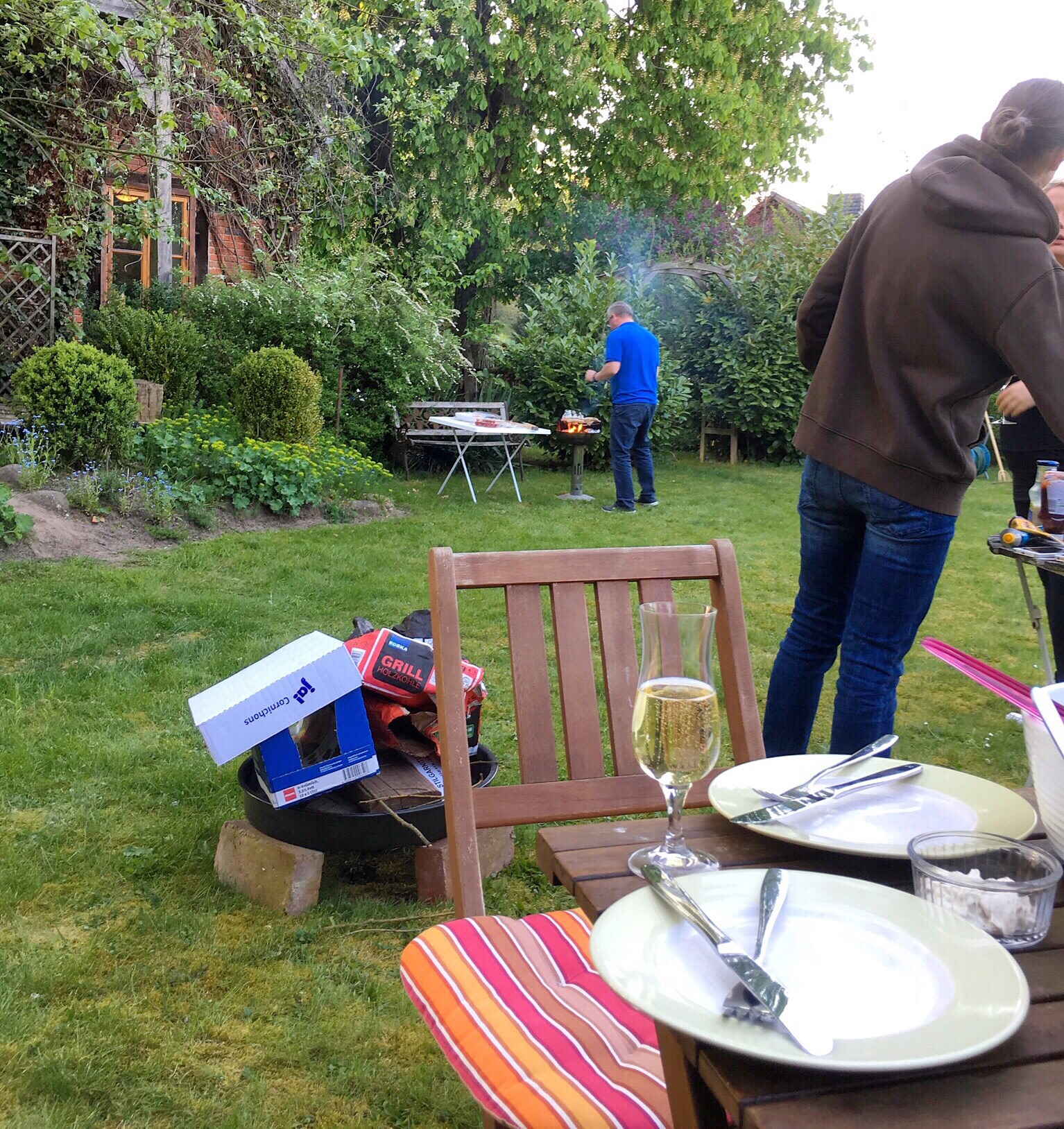 After I eat my sausage and complete my circuit of the Mützingenta, I walk back to my car at Jens' - I stop in and thank him for the use of his driveway for parking. One of his friends from Hamburg (that I know) is there and they are having a barbecue. They invite me to stay - and I am happy to do so. I also have a conference call so I will be able to use his wifi for this.