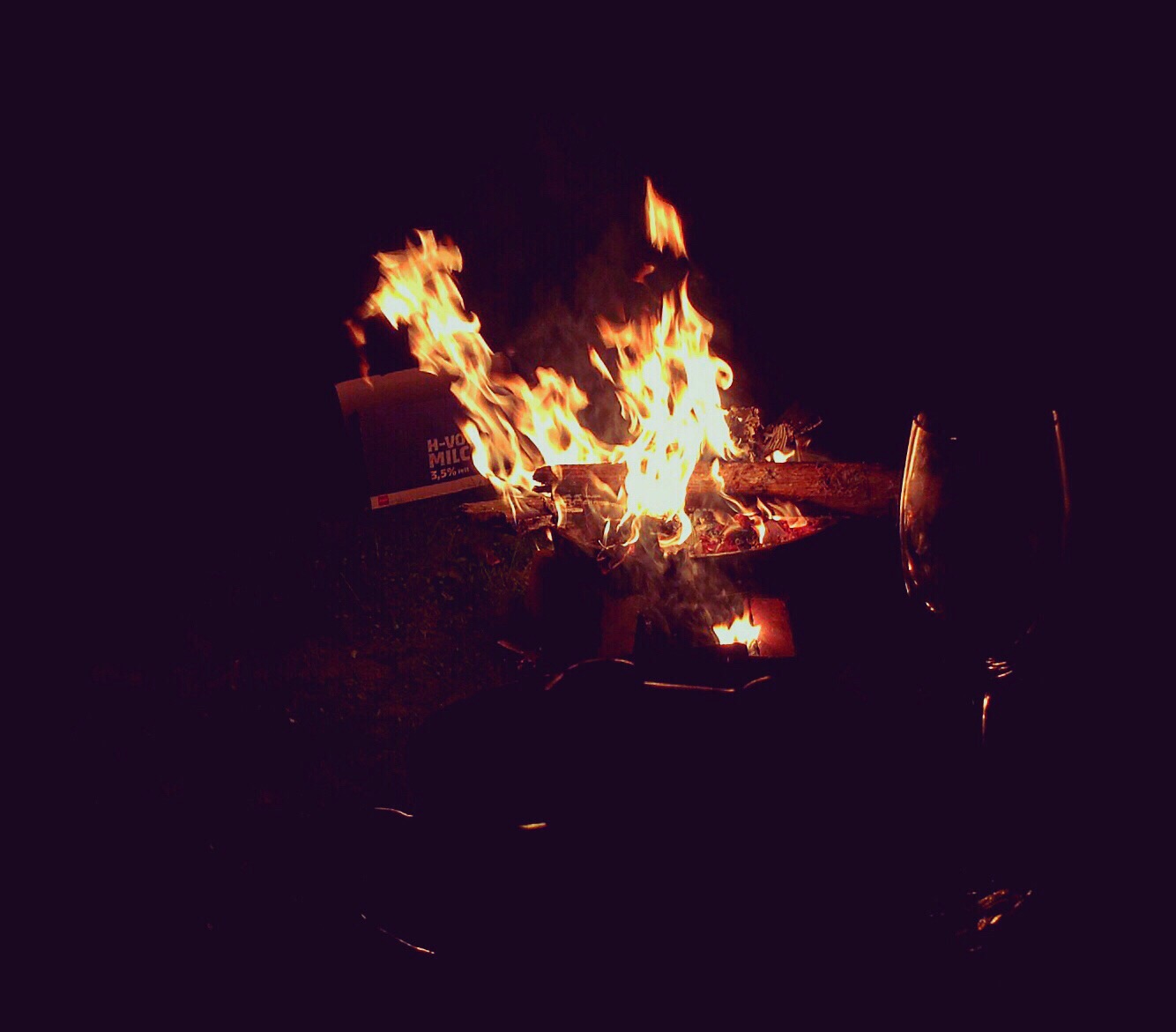 Once the sun sets, and it begins to become cooler, Jens gathers items to burn in the fire pit.