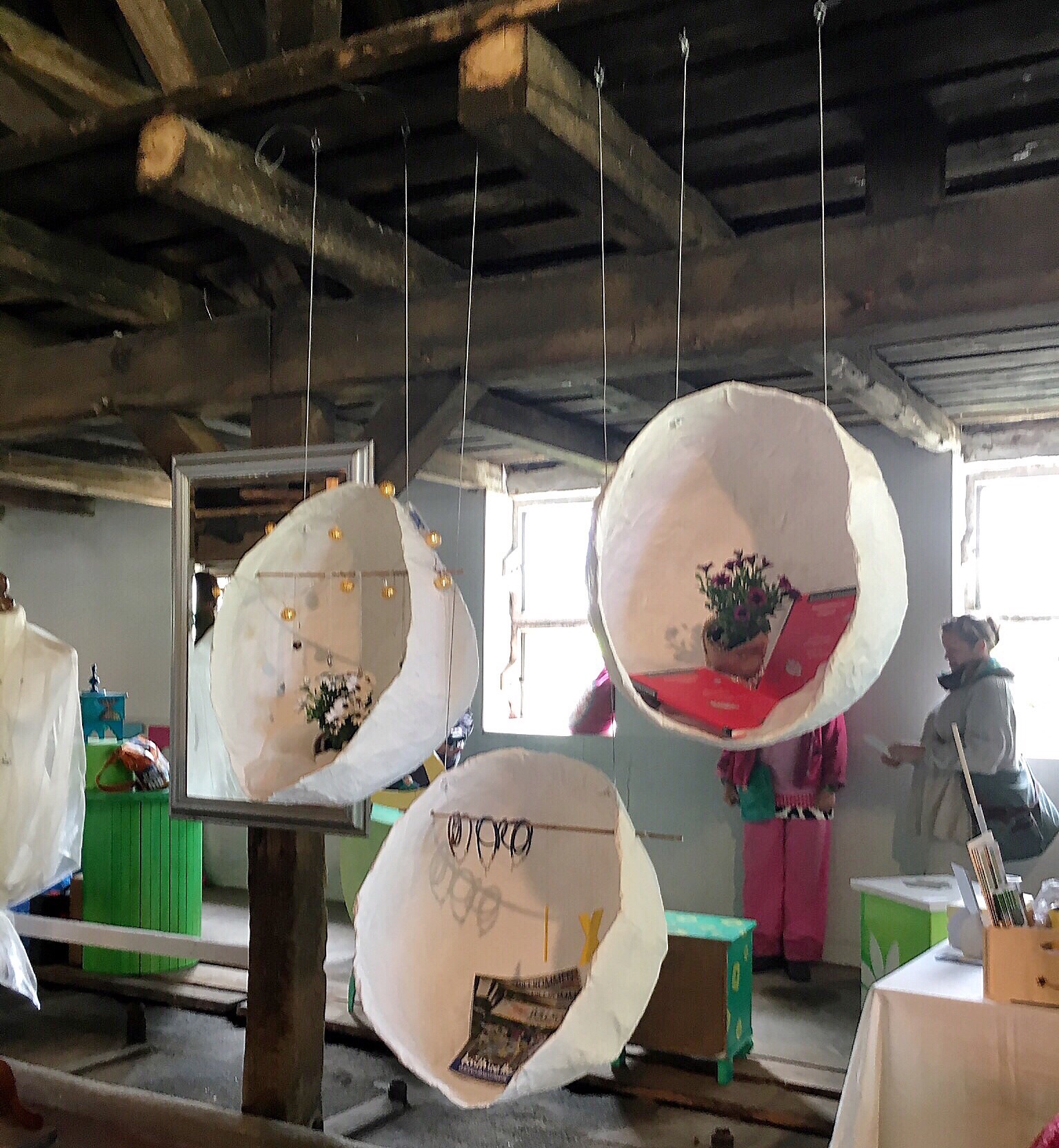 After walking around outside...the sculptures in wood and metal...the handmade wool yarn...the jewelry...I head into one of the barns. The artist showcased here...I don't even really have words...