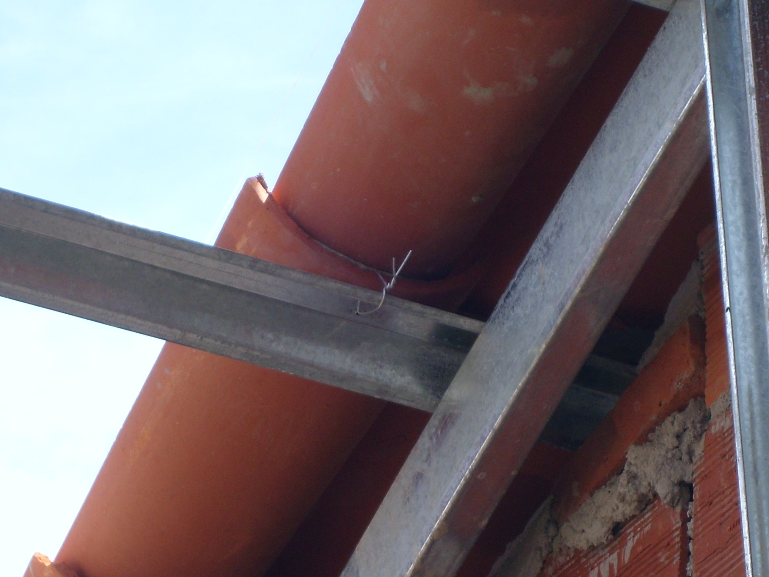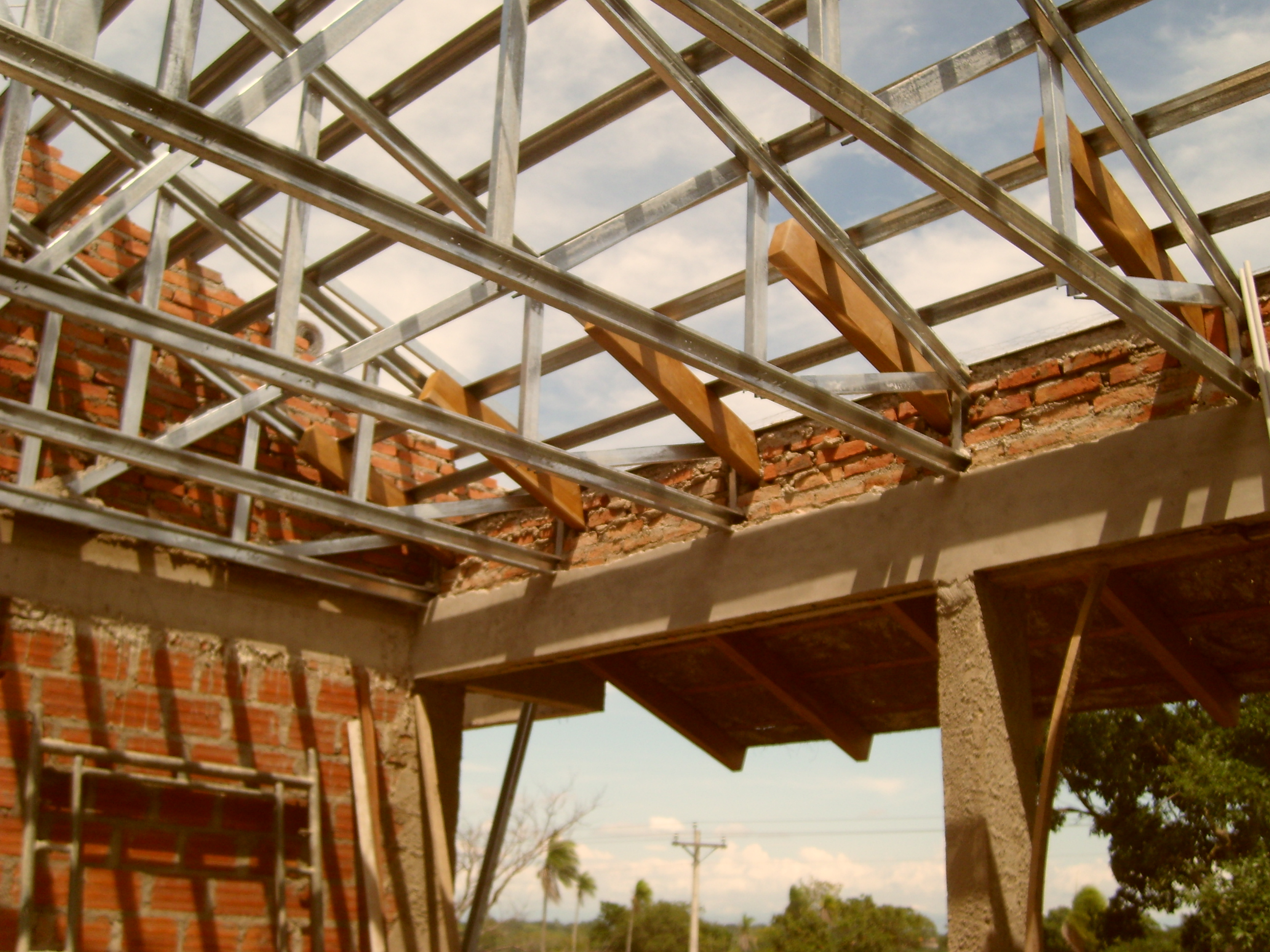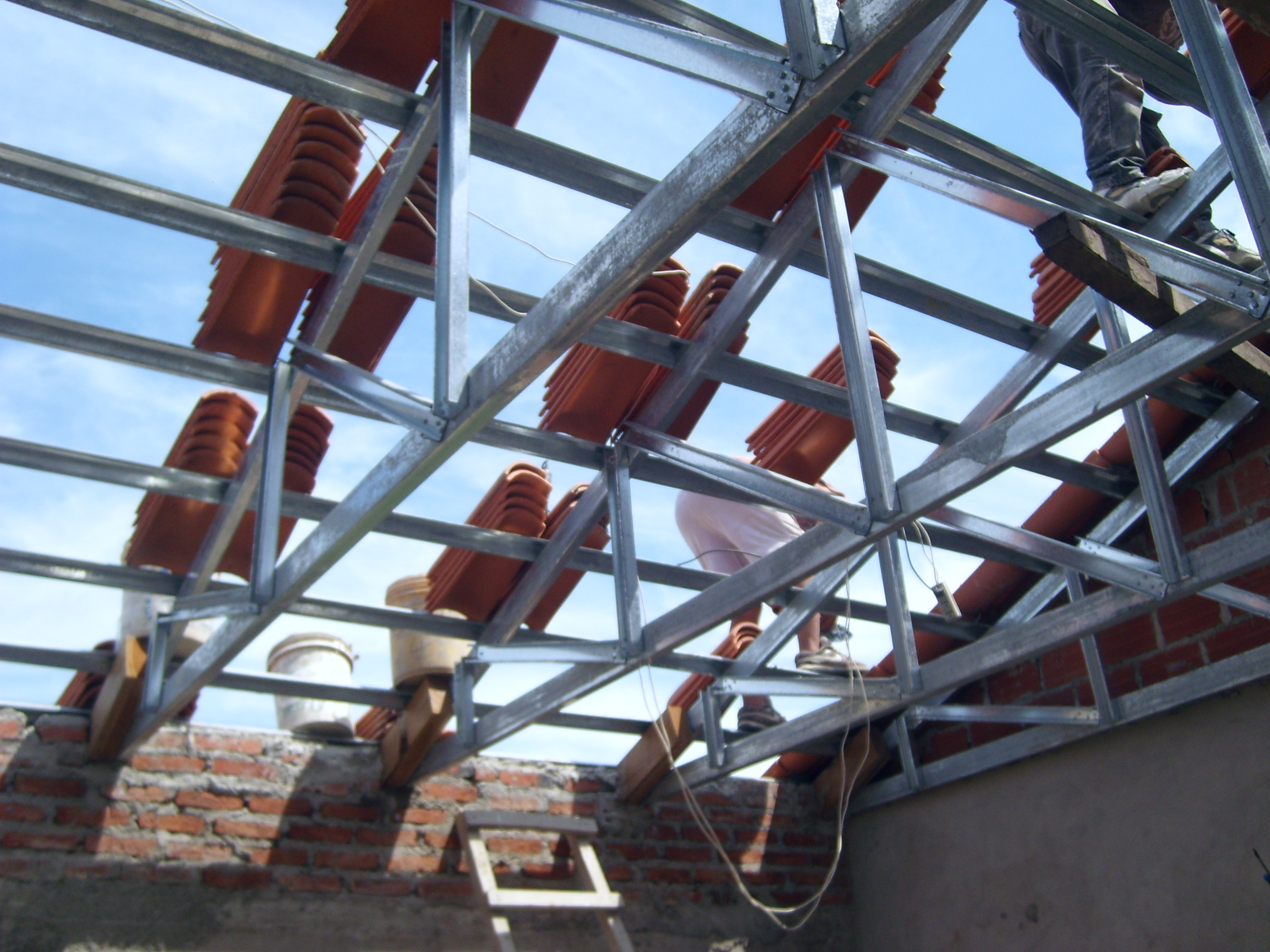 Foto: Muestra de instalado de teja colonial sobre cercha metálica.