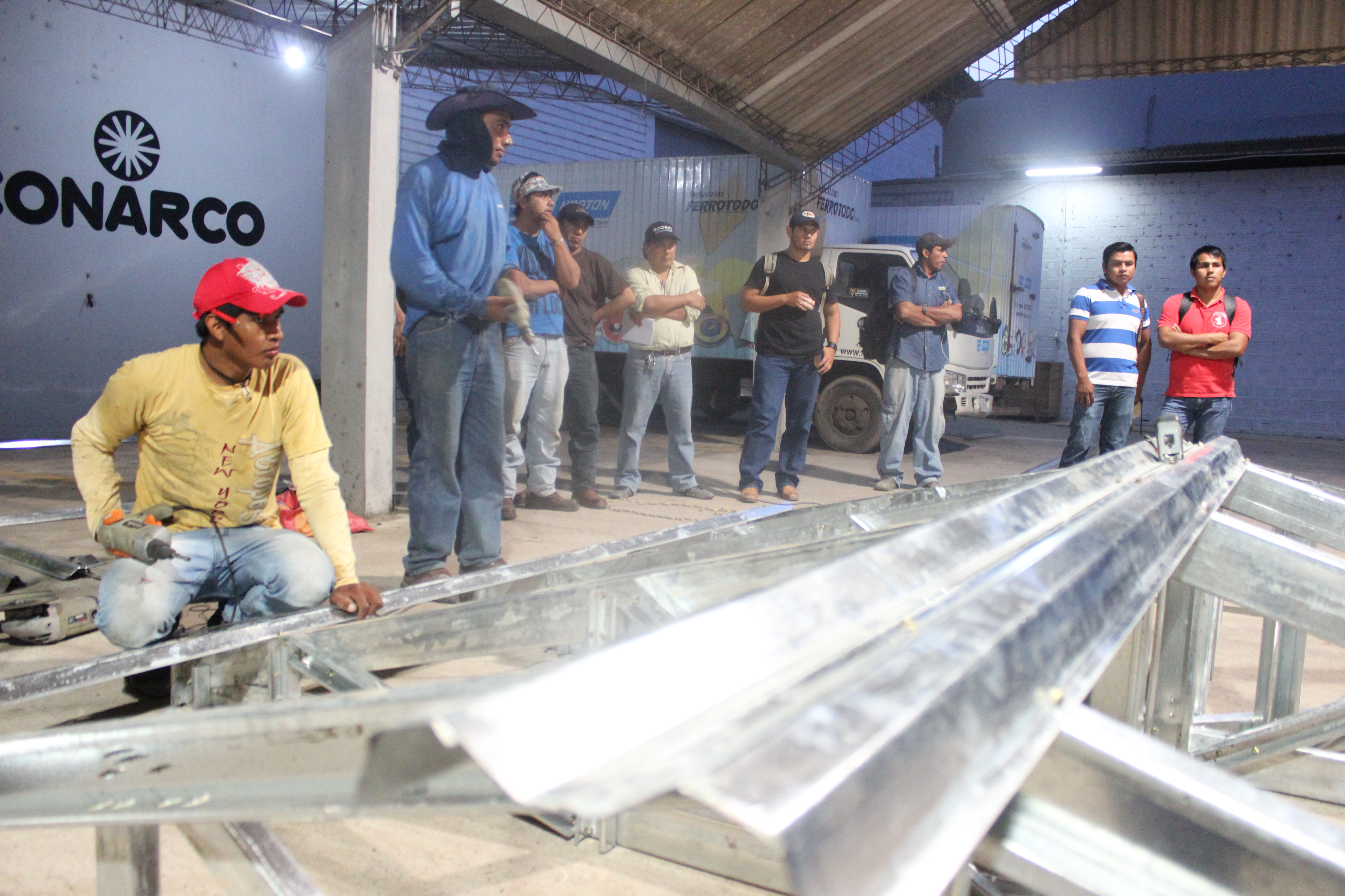 Foto: Instalador realizando muestra de colocado de perfil Omega.