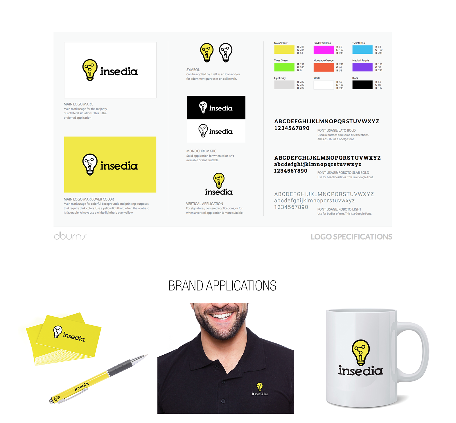 2- BRAND MANUAL: DBurns finalizes the process with a brand manual containing all the guidelines and specifications for the brand usage. This is key to ensure brand unity throughout any usage and application of the brand.