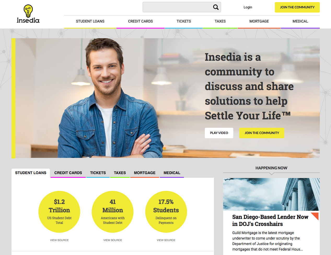Insedia is an online community and information channel that shares vital and reliable information about its audience’s common interests such as: Student Loans, Credit Cards, Tickets, Taxes, Mortgages, and more.