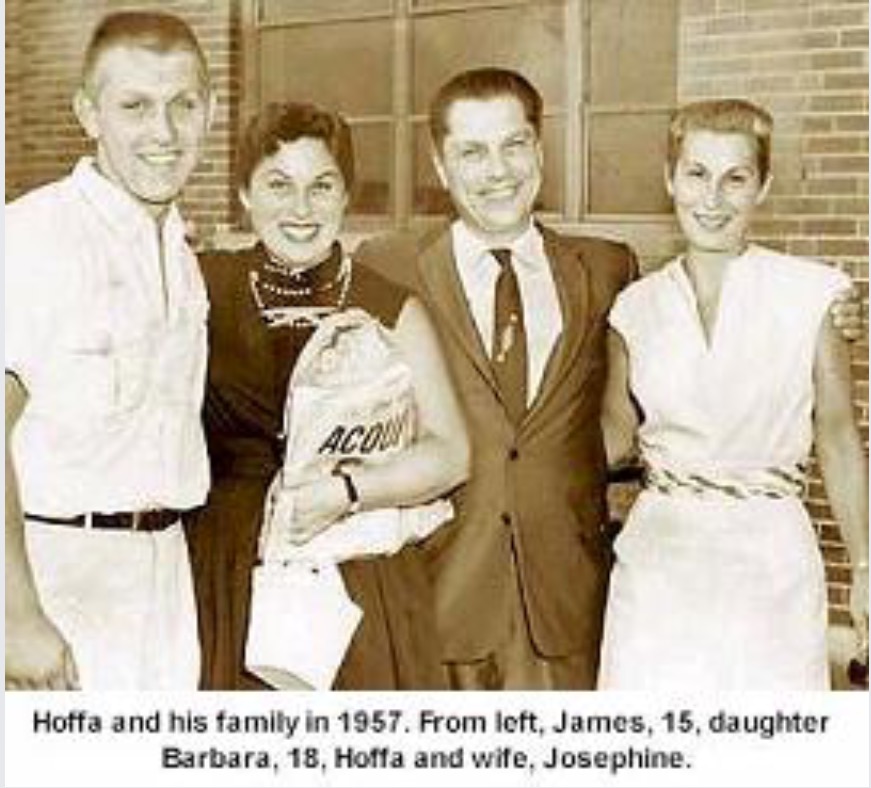 Hoffa had one wife called Josephine. They had two childreens together called Barbara and James. When Hoffa disappeared James, his son, tried to found him, he did investigations but he didn´t find him. He become president of the Teamsters union, like his father was.