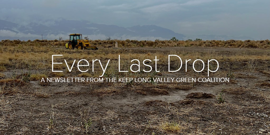In this issue we discuss the so-called mitigation projects done by the Los Angeles Department of Water and Power in an article by Allison Weber, "The Mitigation Failure," and feature an article from Beth Deaton, "Evaluating Vegetation," detailing what these mitigation sites should look like. Deaton is a member of the Sierra Club Range of Light Group, a Keep Long Valley Green Coalition member organization. "Evaluating Vegetation" is the first installment of a larger article series on LADWP’s mitigation sites which will be published in the Range of Light Group’s newsletter.
