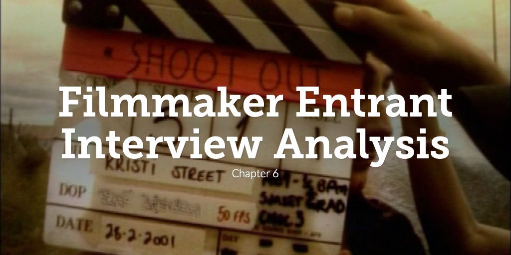 Sixteen filmmakers were interviewed, each with their own unique ‘idiosyncratic background’ (Csikszentmihalyi, 1999). They had all entered the event over multiple years and recognised as making creative contributions with at least two films selected by the preliminary judges as part of the Top Ten screening or winning category awards.
