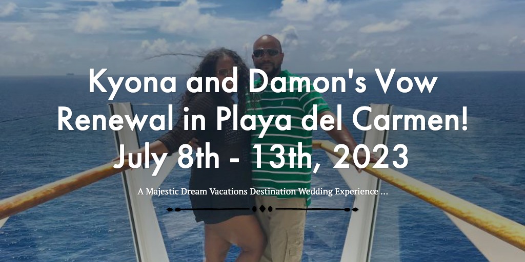 All guest MUST book minimum 3 nights/4 days per the resort wedding policy and all guest MUST stay at this resort in order to attend. Please send ALL communications via email to Majestic Dream Vacations: nwilliams@majesticdreamvacations.com