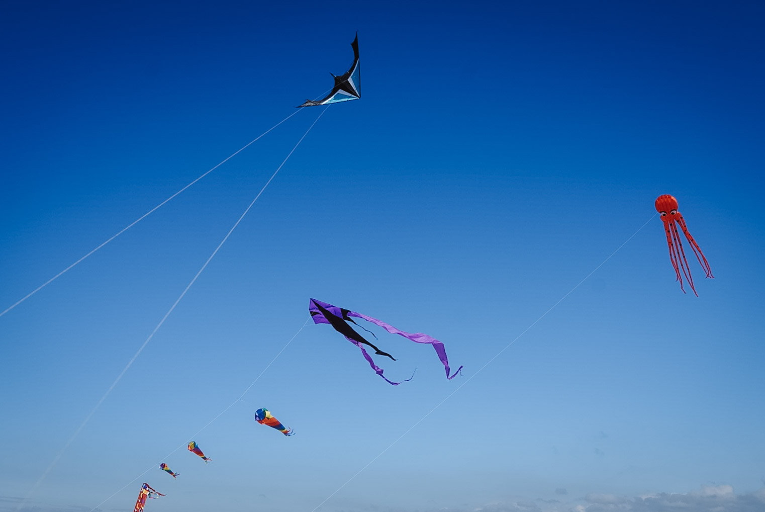 … und neben dem Schweinehund am Morgen wurden die Drachen am Nachmittag besiegt. Der Wind kam gleichmäßig stark vom Meer, so konnte nix im selbigen landen.