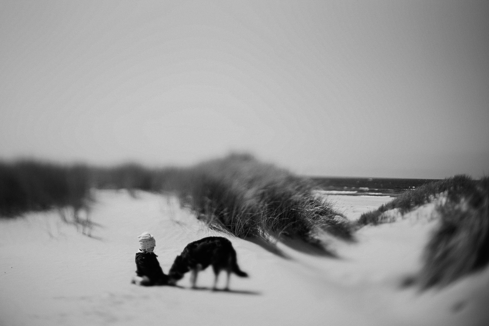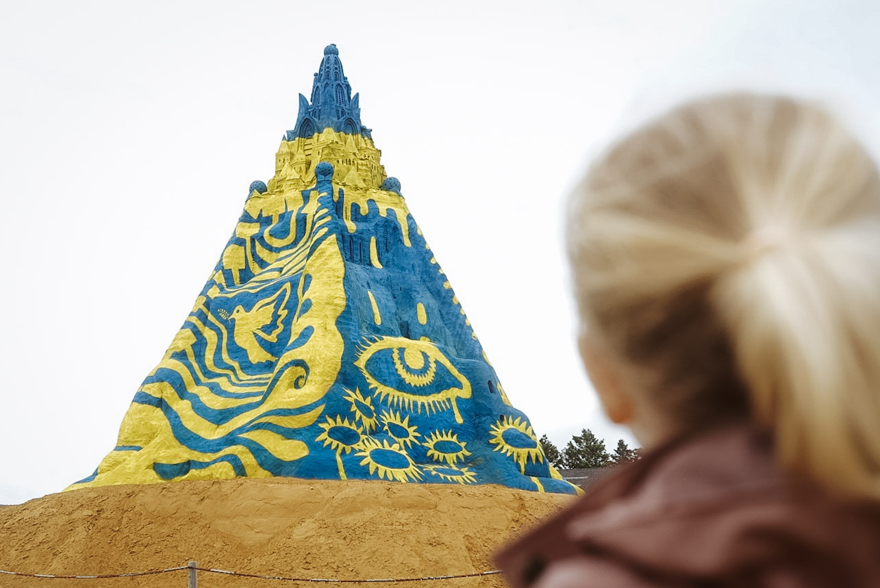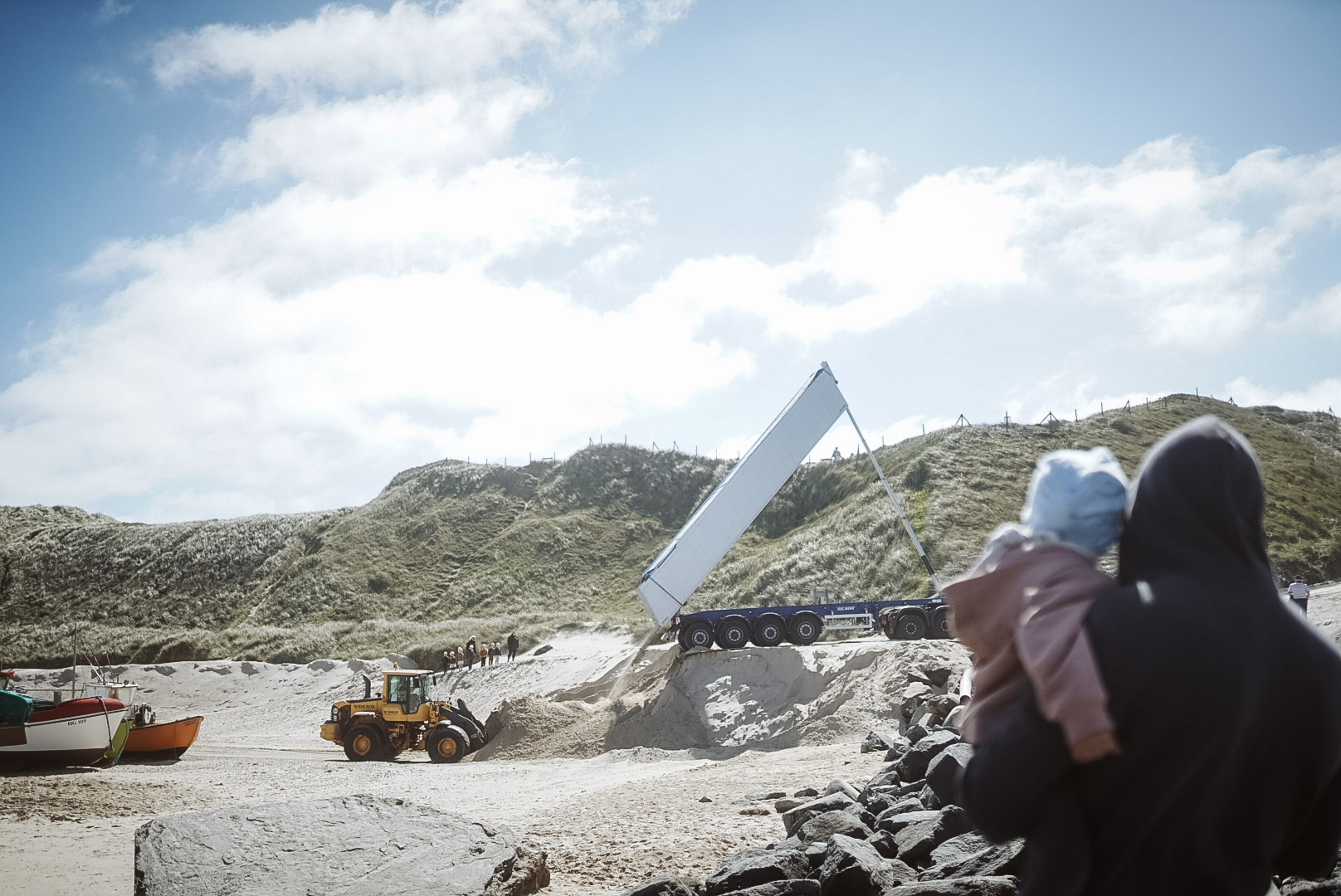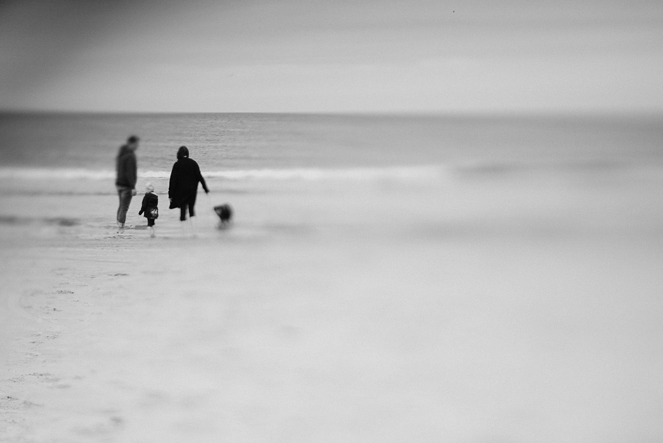 Das übliche Bild: Mama mit gesenktem Kopf auf Bernsteinsuche, Papa auf Knien vor den Drachen.