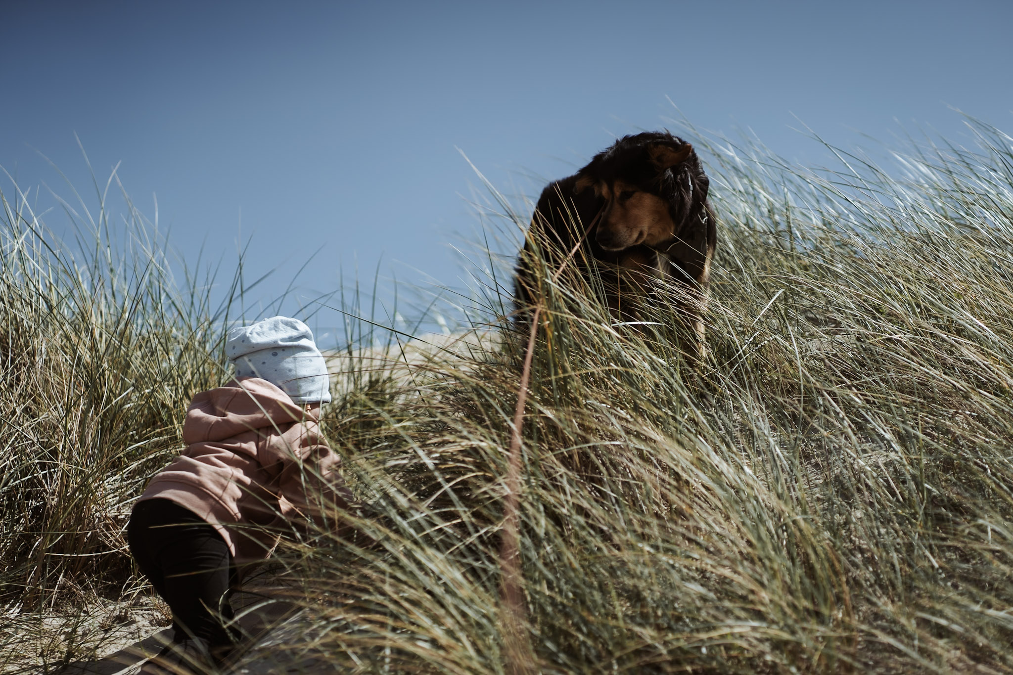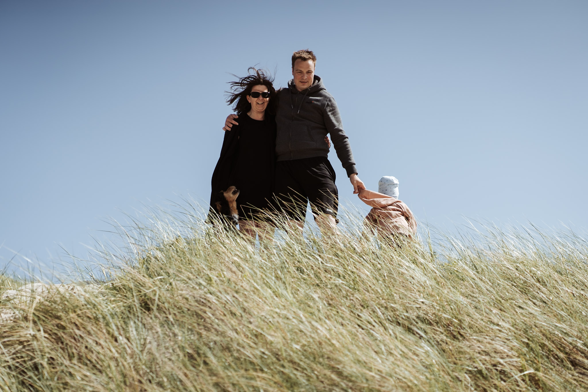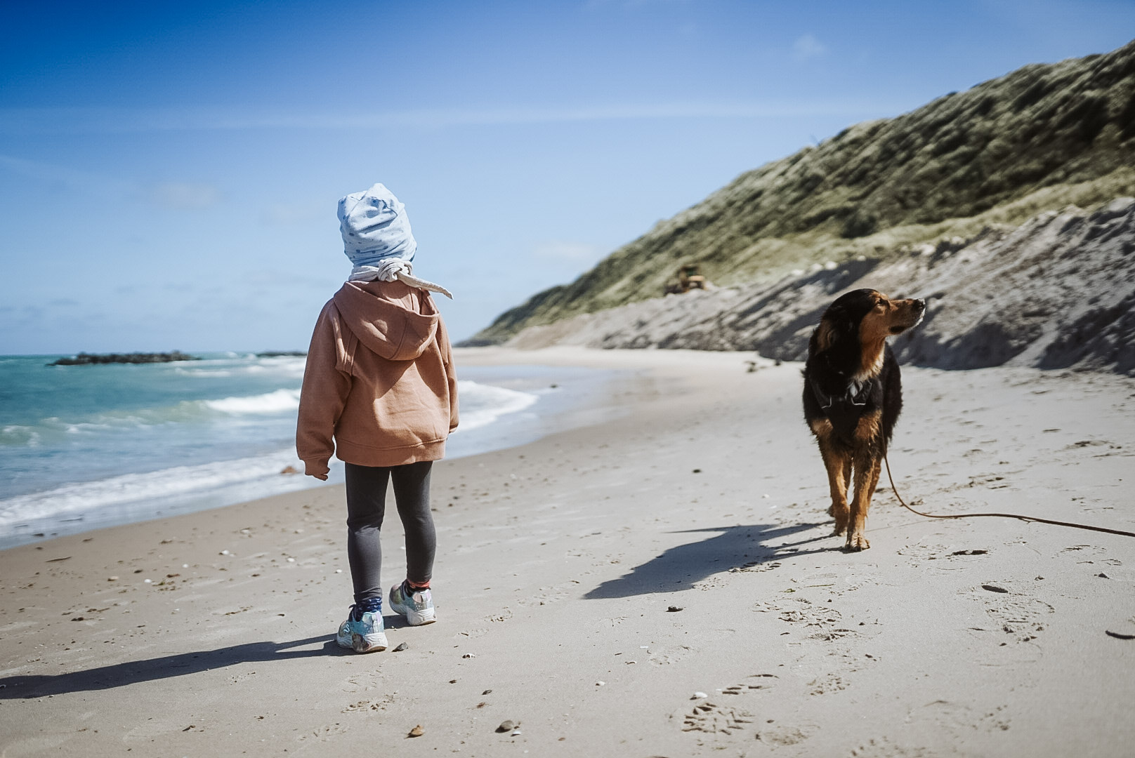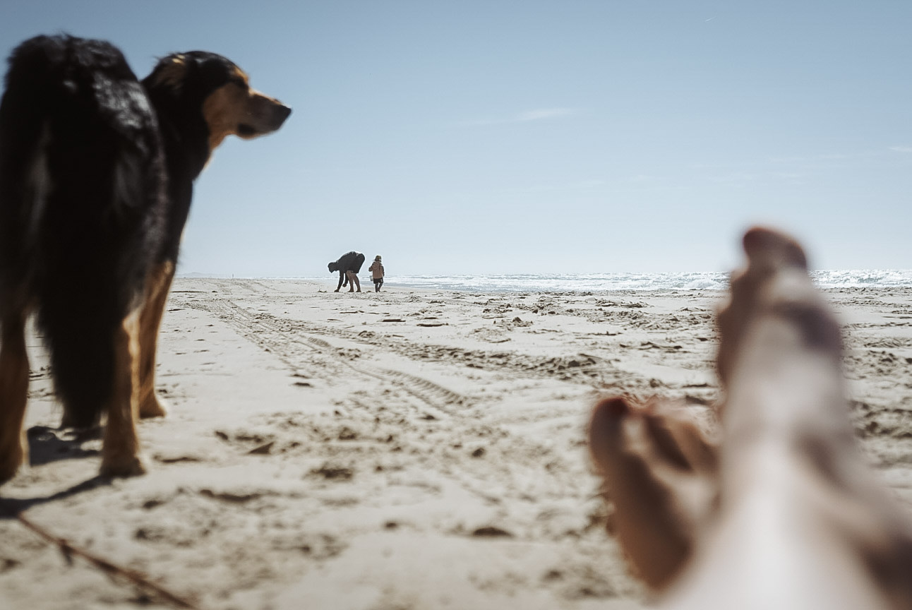 Nach 700 km und dem gefühlt 387. Mal „Wann sind wir da, das ist so langweilig“: Ankunft. Der erste Halt wie immer am Strand. Hund und Kind sind gleichermaßen begeistert.