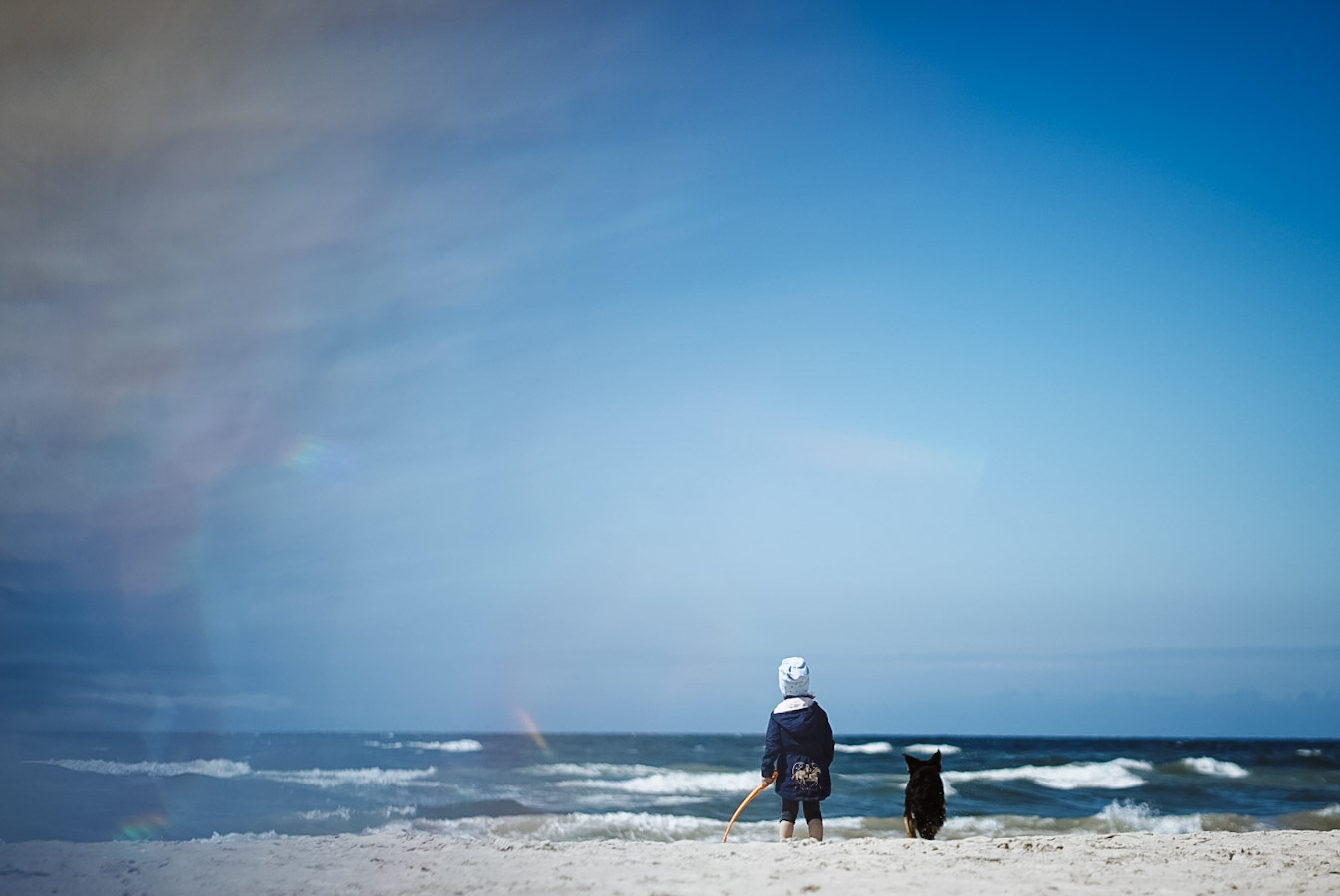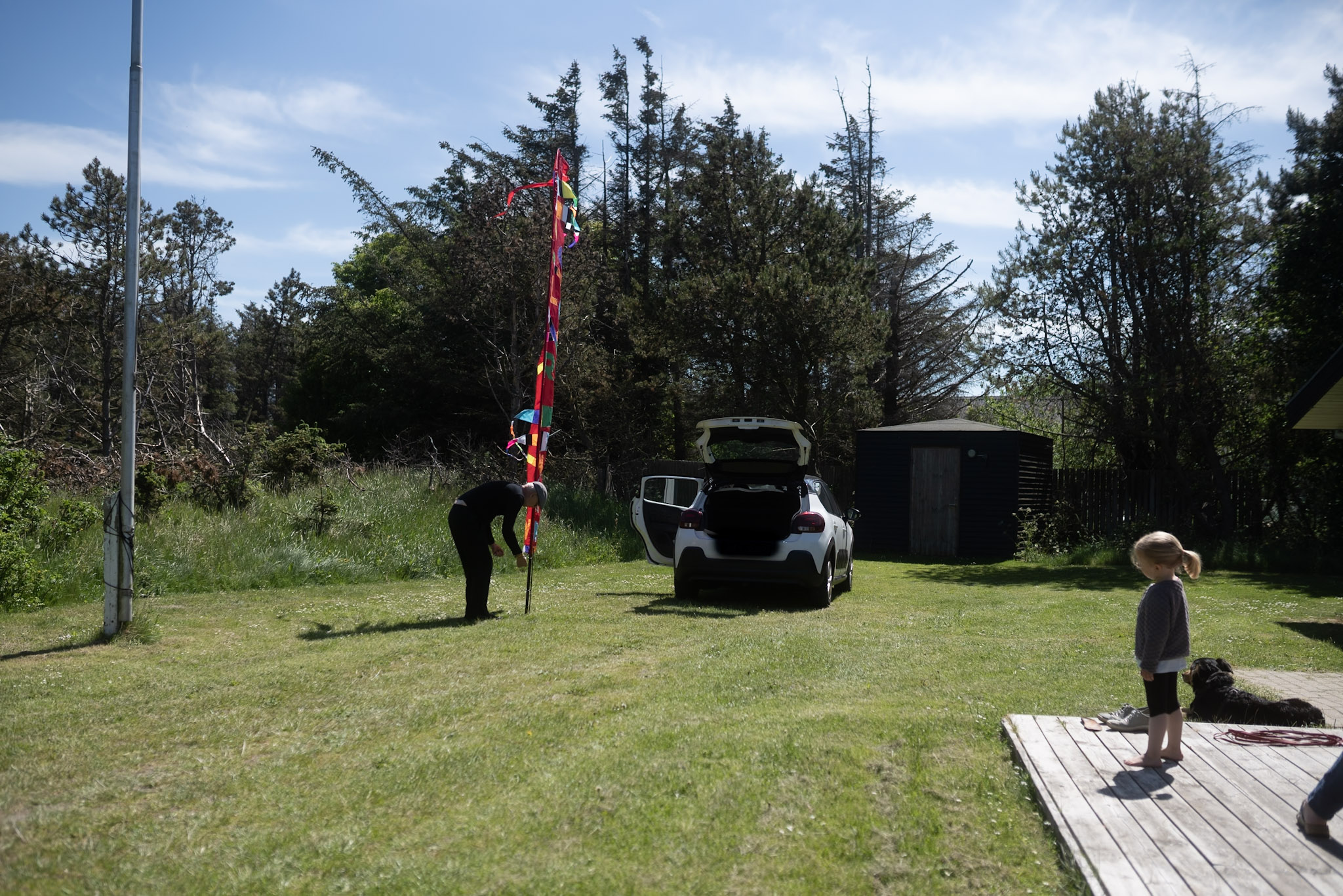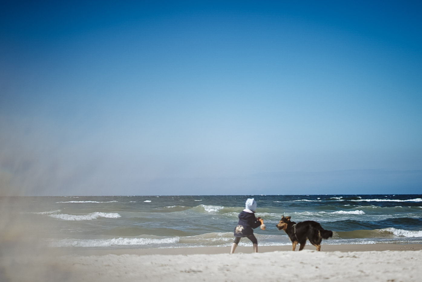 Nach 700 km und dem gefühlt 387. Mal „Wann sind wir da, das ist so langweilig“: Ankunft. Der erste Halt wie immer am Strand. Hund und Kind sind gleichermaßen begeistert.