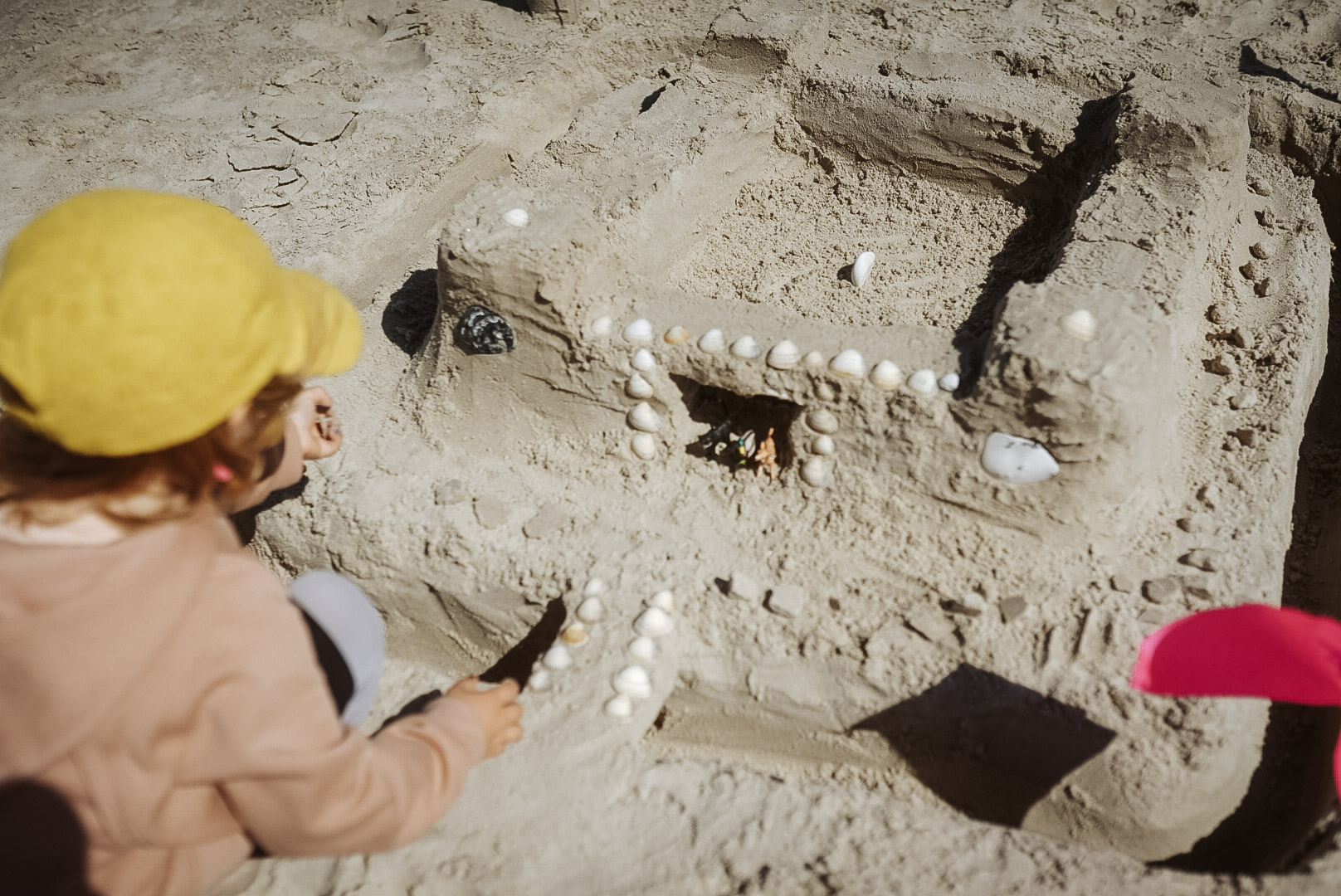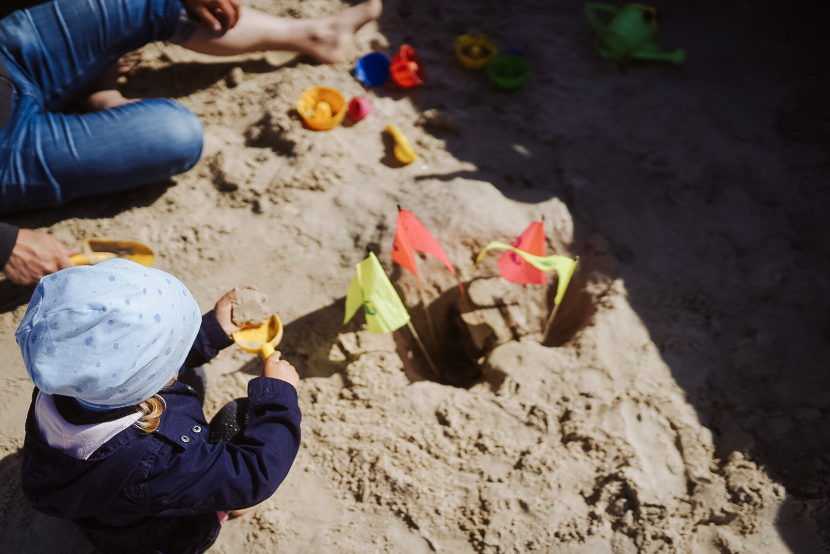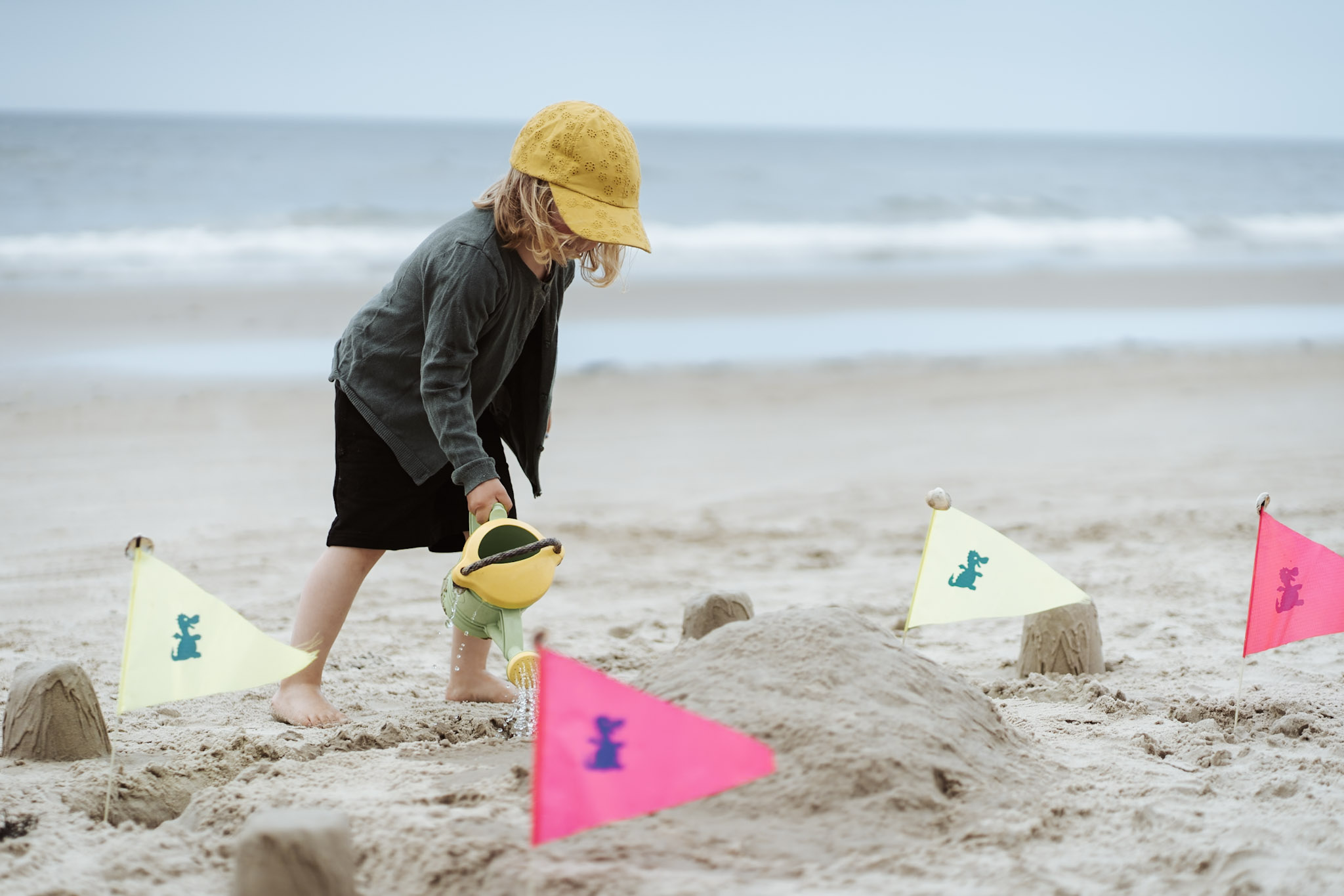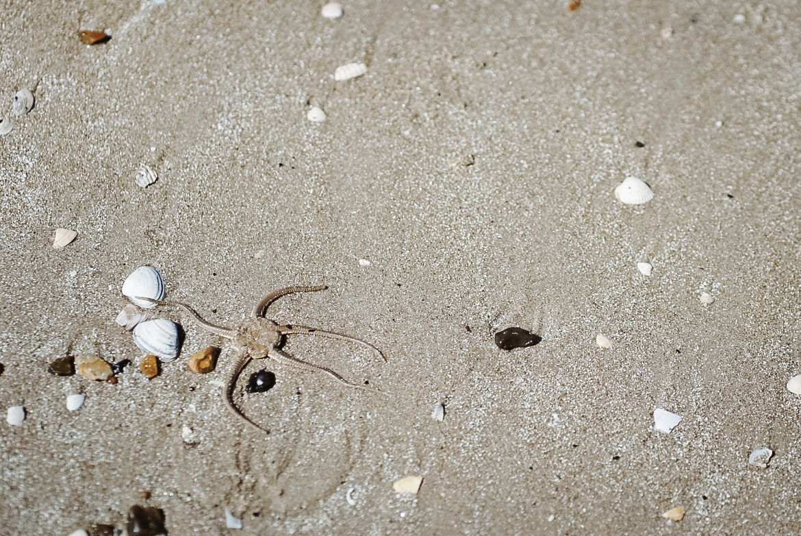 Am Strand warten wir auf die Omas und Opas, bauen Burgen, machen Matschepampe, lassen Drachen steigen und retten einen Seestern.