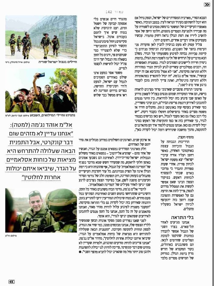 בקיצור, בלגן. כבר יותר מחמש שנים שמלחמת האזרחים בסוריה מתנהלת מעבר לגדר, והסוף לא נראה באופק. "כשמסתכלים מזרחה, אנחנו רואים המון קבוצות שכרגע לא מהוות איום ישיר עלינו, אבל אנחנו משתדלים לבנות את ההיערכות שלנו כלפי איומים עתידיים. אנחנו בהחלט רואים מצב שהם מפנים את הנשק שלהם כלפינו".