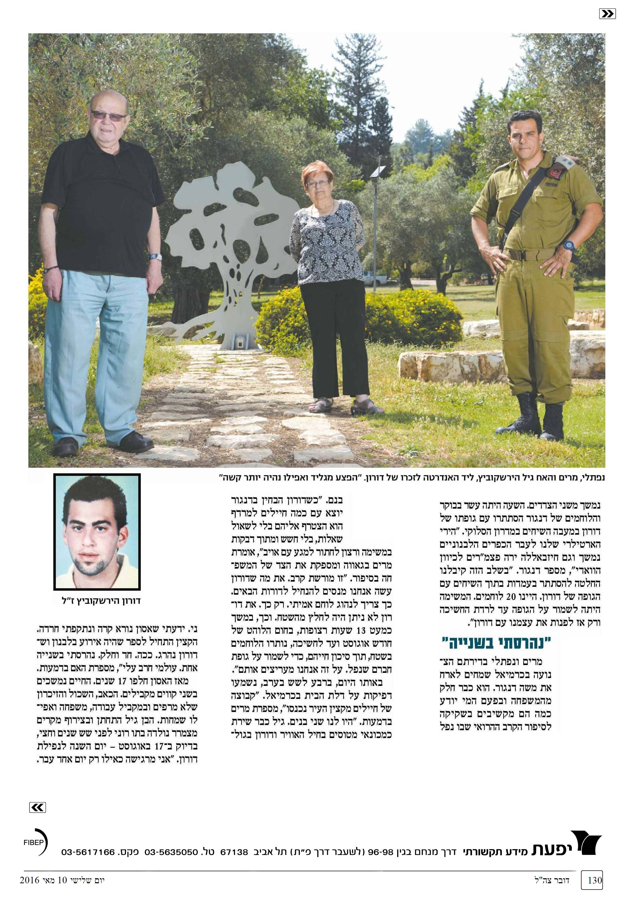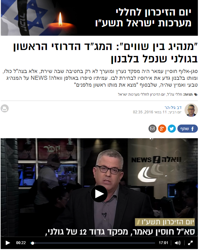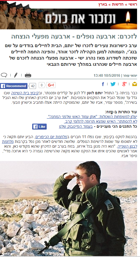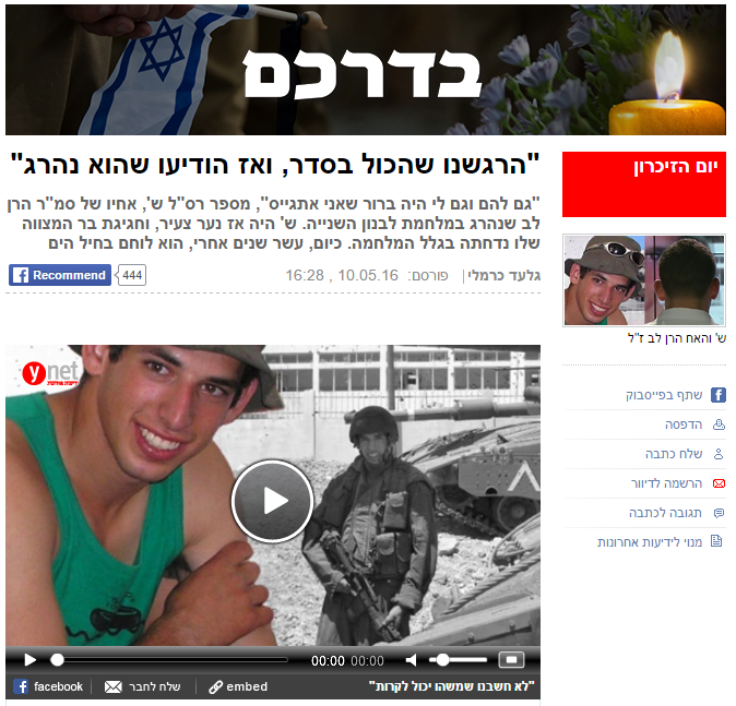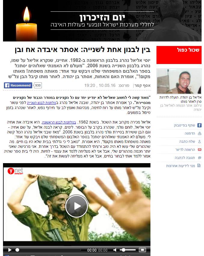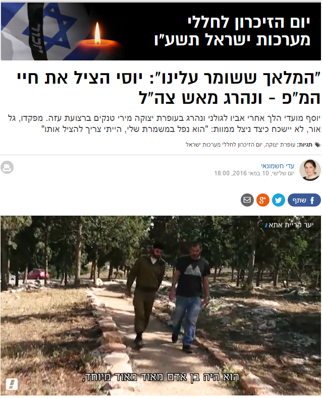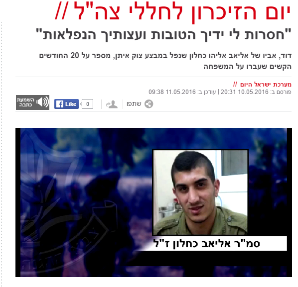כתבה באתר וואלה: כמוך רציתי להיות- אלוף פיקוד הצפון אביב כוכבי כותב למ"פ שנפל בלבנון