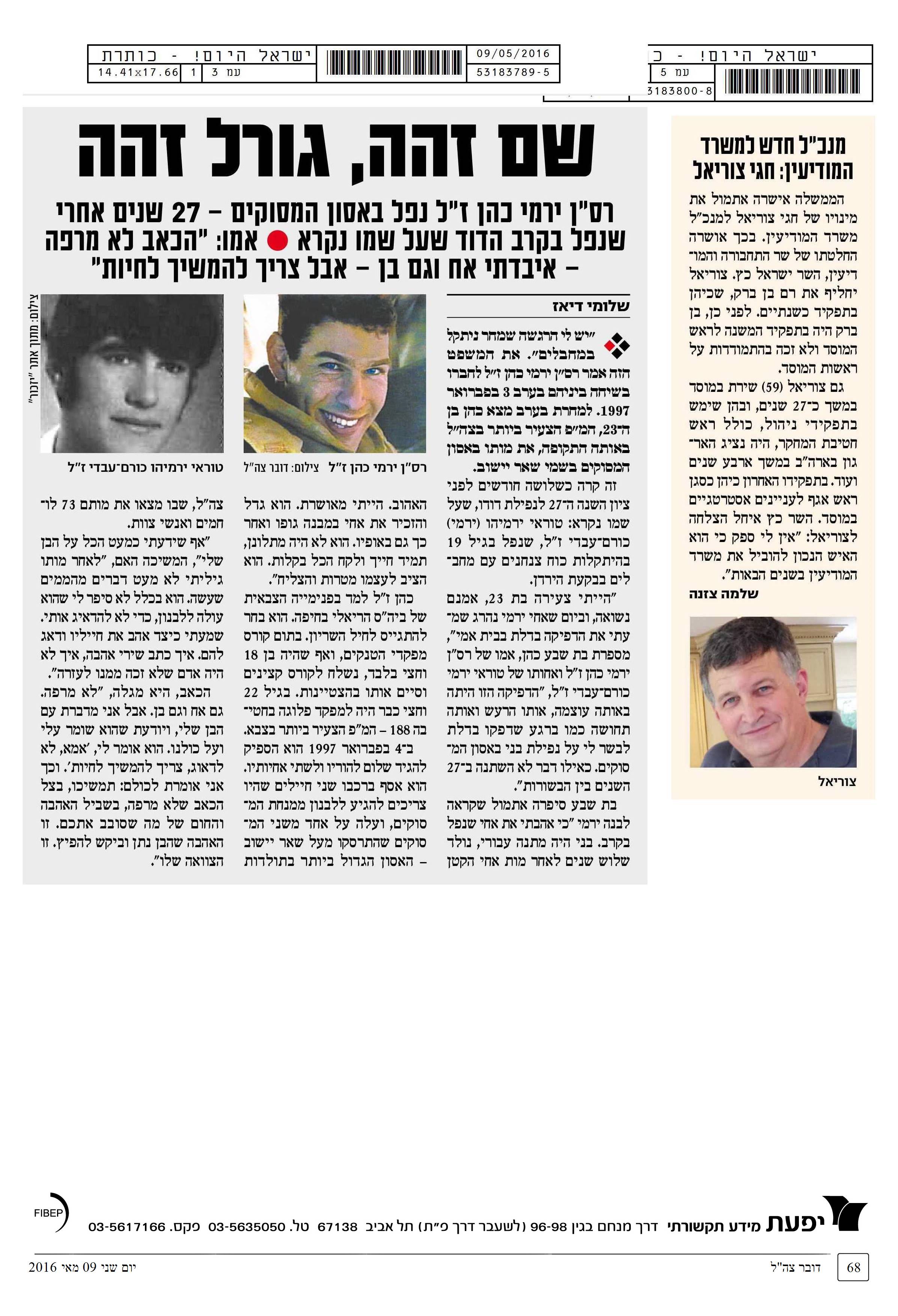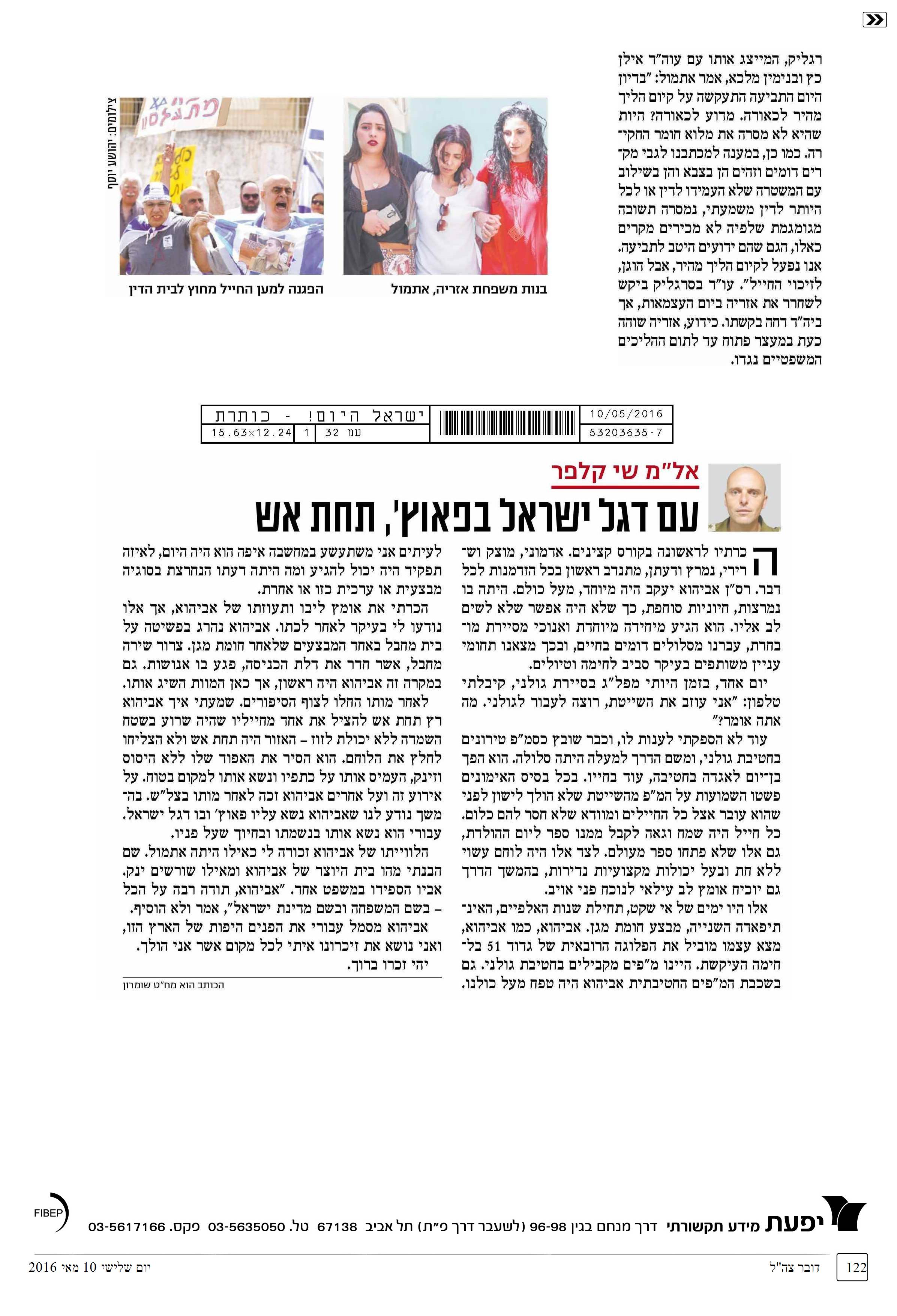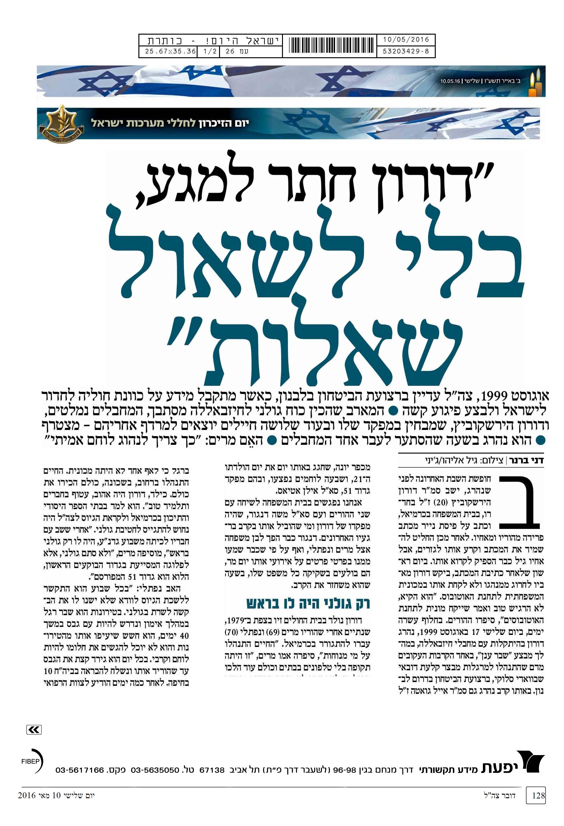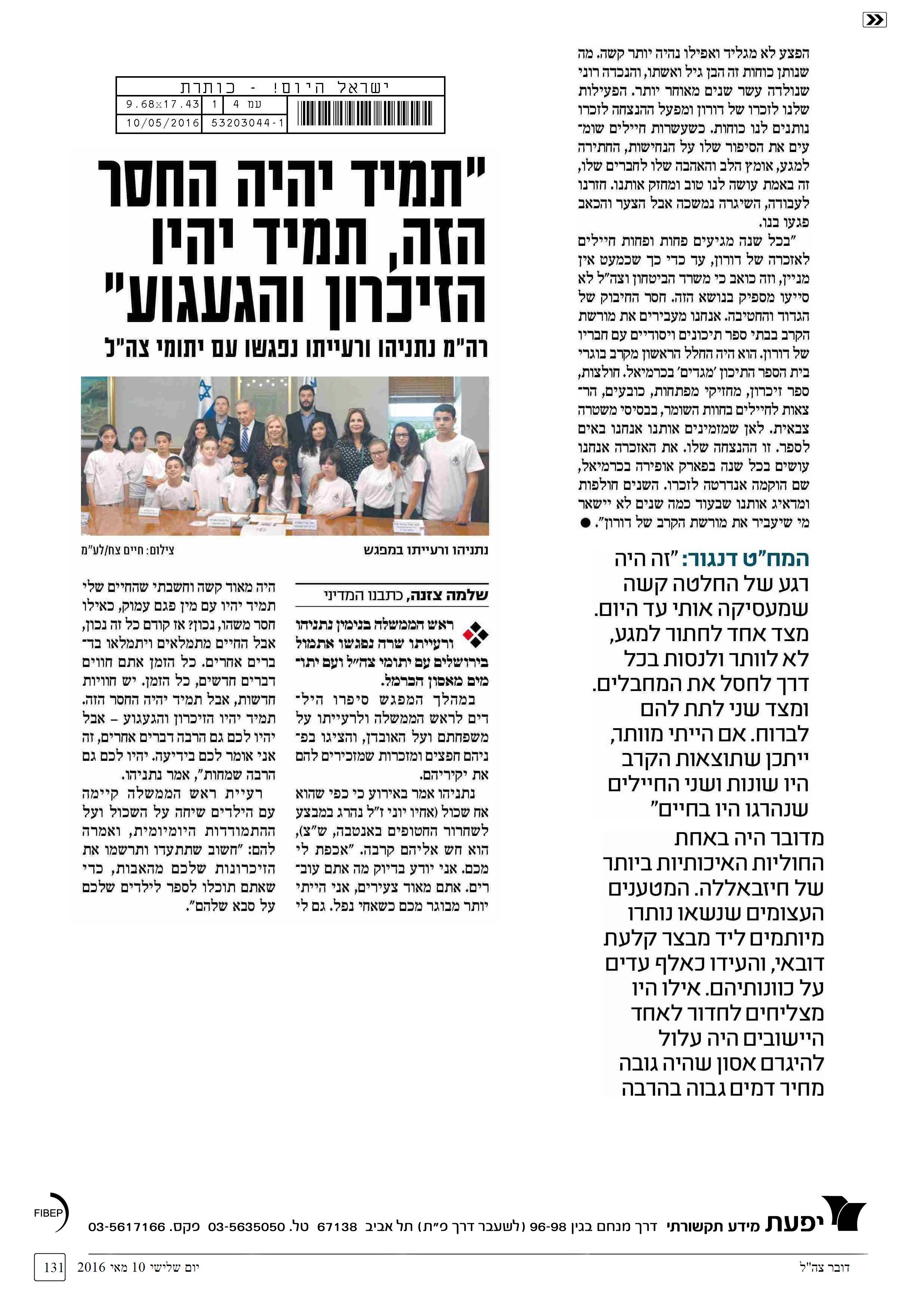 כתבה באתר וואלה: כמוך רציתי להיות- אלוף פיקוד הצפון אביב כוכבי כותב למ"פ שנפל בלבנון