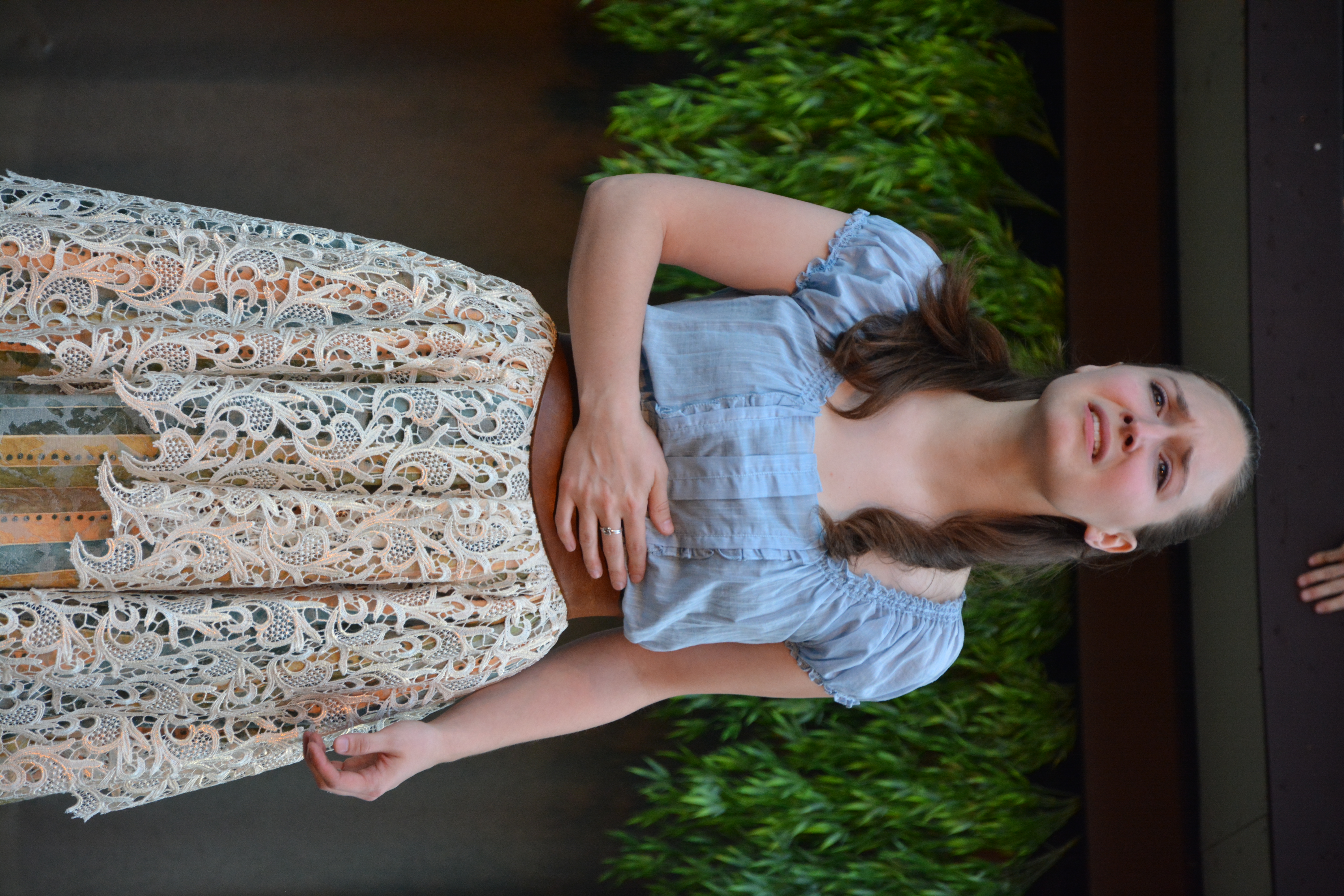 Miranda is one of the only female characters in The Tempest. Her father, Prospero, is the only human she ever remembers seeing. Thus, being raised by him on an island has shaped her into a unique individual. It would be easy to play her as helpless and ignorant. Although she is ignorant of certain qualities of “civilized life”, she is by no means helpless. As I worked on her “arc” I found that she has more gumption than I first imagined. Hard work and study have been a part of her life from an early age, and her father has taught her everything she knows. Yet, there is still so much that she is curious about, and at the beginning of the play, spurred by the shipwreck she has just witnessed, her deepest questions are finally being answered.