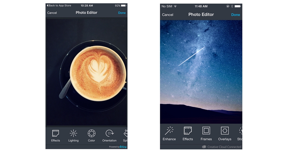 - The Creative SDK Image Editor offers the same editing experience that was found in the Aviary SDK.