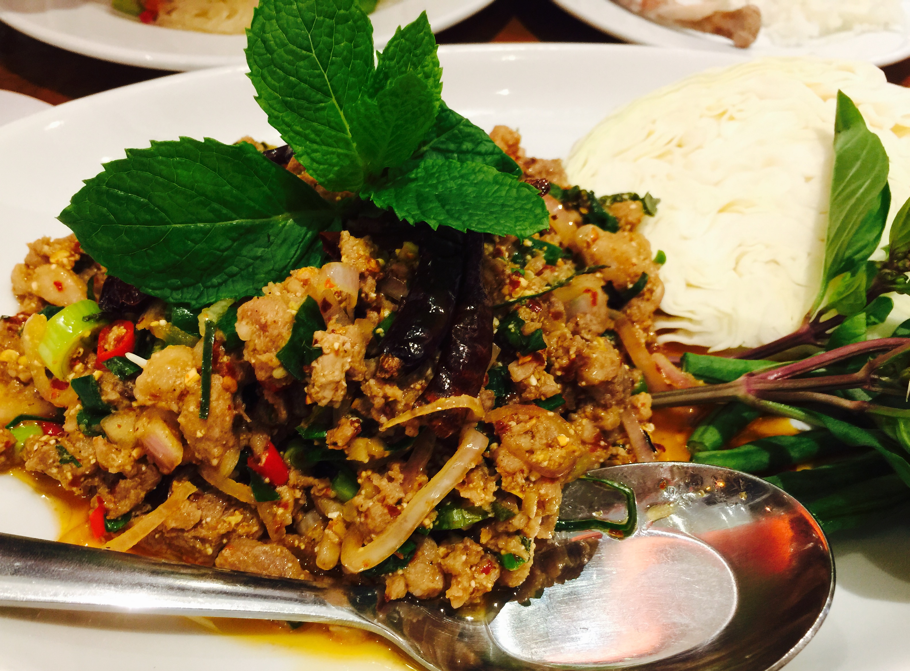 อาหารสุดท้ายคือลาบเป็ดค่ะ รสชาติเผ็ดอ่อน อ่อน เปรี้ยวดีค่ะ ชอบเปรี้ยวค่ะ
