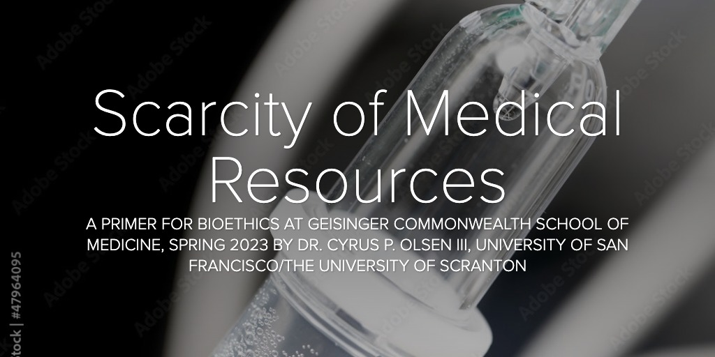 In the context of your coursework, resource allocation presents a set of ethical quandaries for healthcare professionals and hospital administrators. We focus here on problems pertaining to scarcity. Traditionally, scarcity is considered in courses on economics or philosophy, and now more commonly in the context of medicine. The following module, then, will assist us in navigating some of the pressing matters related to scarcity of resources, whether those resources are such things as PPE or ventilators. PubMed GPT 2.7B and other recent releases from OpenAI also render us all more aware of the ways artificial intelligence (AI) and machine learning (ML) are integrated today in medical decision-making; the modules here offer some exploration of decision-making and the constraints arising from scarcity of resources.