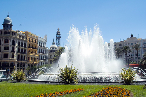 Voy a ir a la Plaza Ayuntamiento, una plaza con muchos fuentes. La alcaldía está al lado de la plaza.