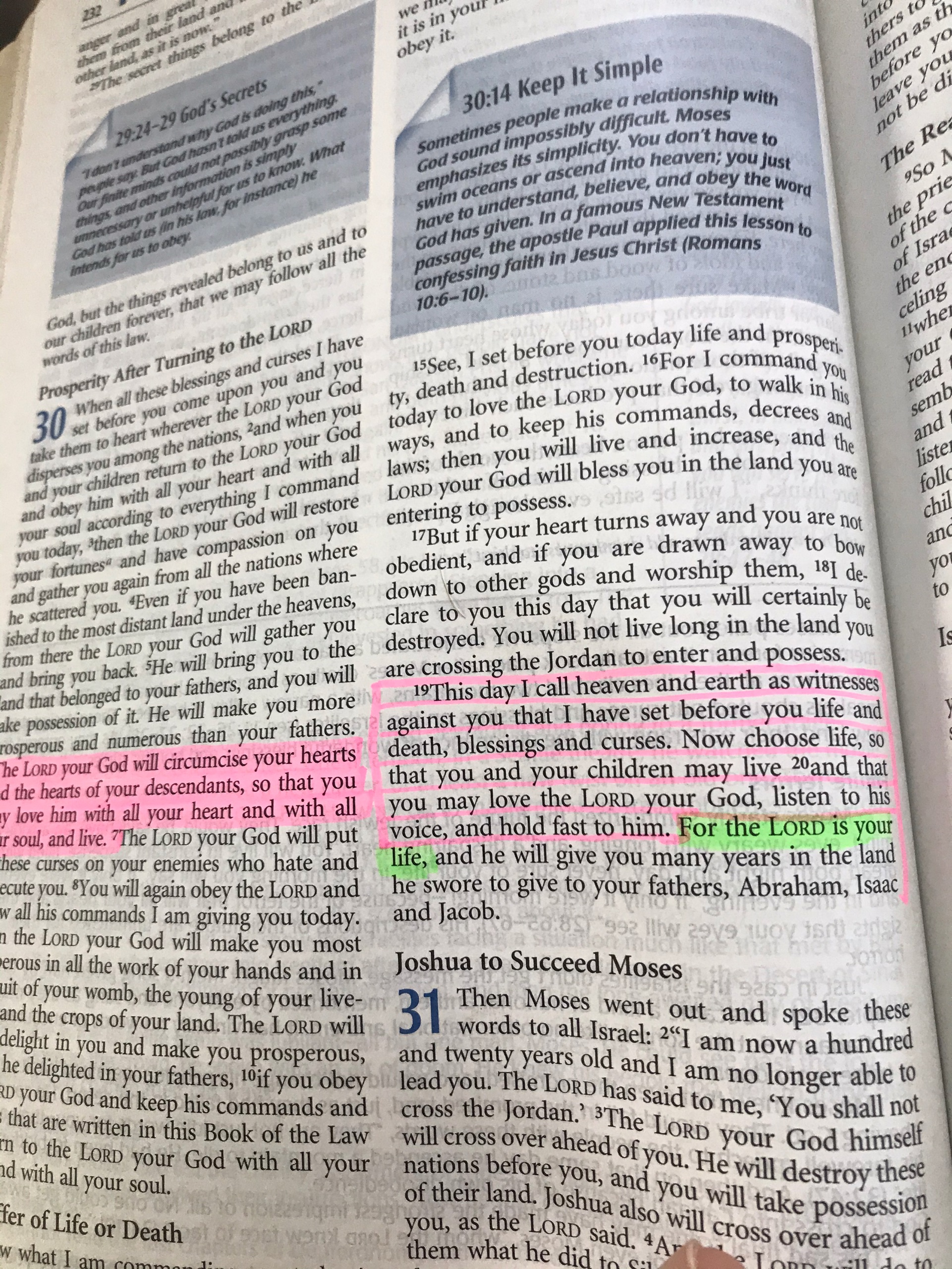 What does Deuteronomy 30 say to you about making decisions? Especially Deuteronomy 30:19-20?