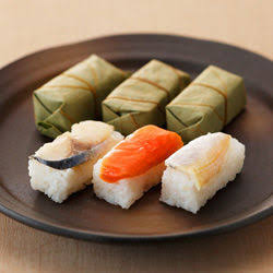 Kakibohazushi (柿の葉寿司 ist Sushi mit dem Kakiblatt)