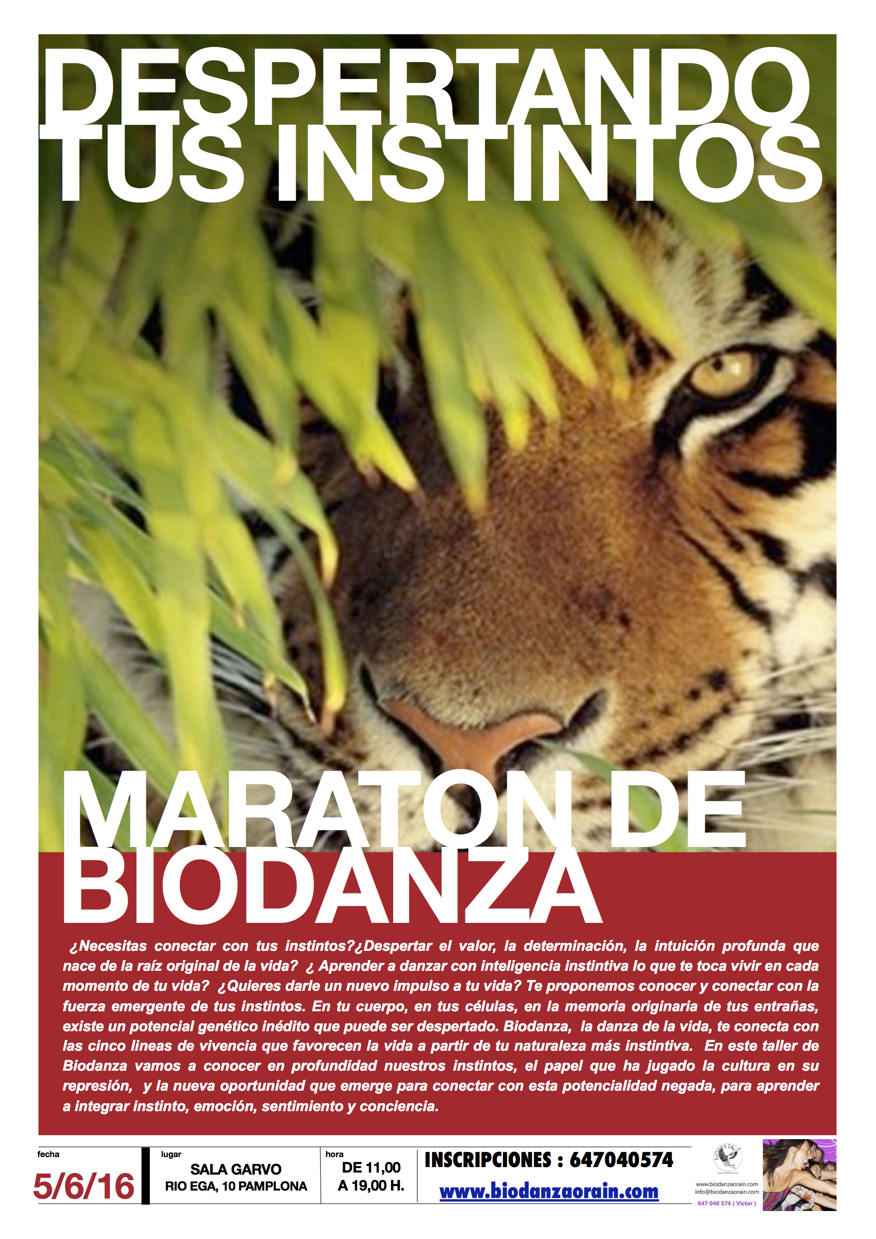 DESPERTANDO TUS INSTINTOs Programa Maratón de Biodanza - Sábado 04 de Junio de 2016, de 11 a 19 h. - Sala de Danza Garvo - Pamplona.