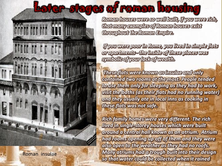Insula is the Latin word for island. It is also the word the Romans use for their large apartment buildings.